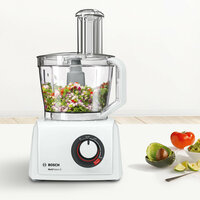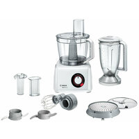 | Подробная комплектация | Большая пластиковая чаша с крышкой и толкателем (объем 3,9 л), блендер (объем 1,5 л), насадка для замеса теста, венчик из нержавеющей стали, диски из нержавеющей стали, держатель дисков, терка мелкая, двухсторонний диск терка/шинковка из нержавеющей стали |