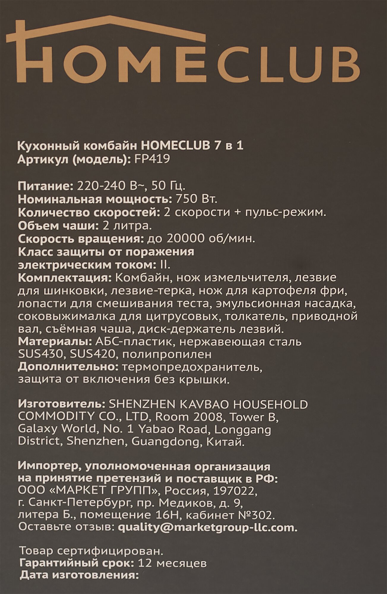 Кухонный комбайн HOMECLUB 7в1 (шинковка, терка, нарезка фри, измельчение, смешивание, соковыжималка): сравнение цен, характеристики, фото, актуальное наличие и цены.