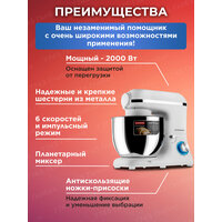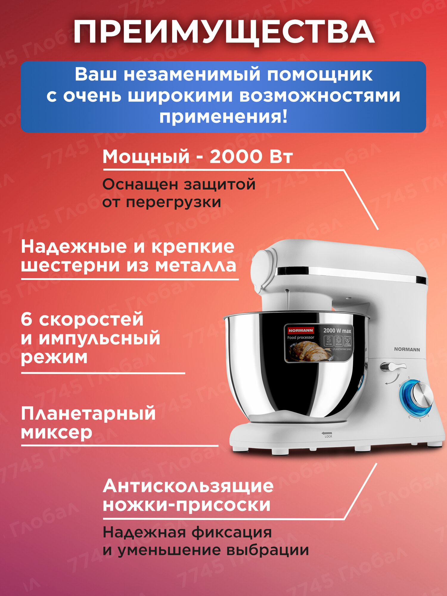 Купить Кухонный комбайн NORMANN AFP-961, 2000 Вт, 7 скоростей, чаша 7 л, мясорубка, блендер, планетарный миксер с доставкой по всей России.