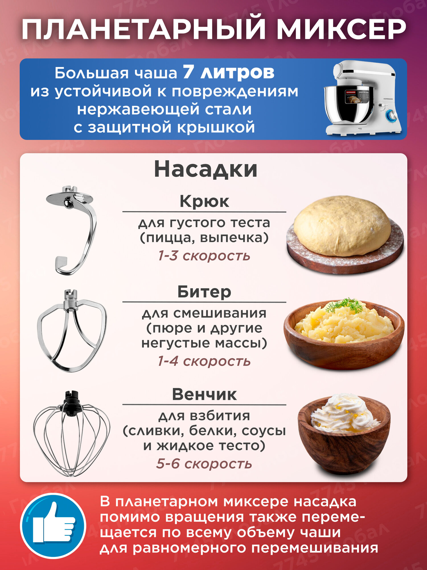 Кухонный комбайн NORMANN AFP-961, 2000 Вт, 7 скоростей, чаша 7 л, мясорубка, блендер, планетарный миксер: сравнение цен, характеристики, фото, актуальное наличие и цены.