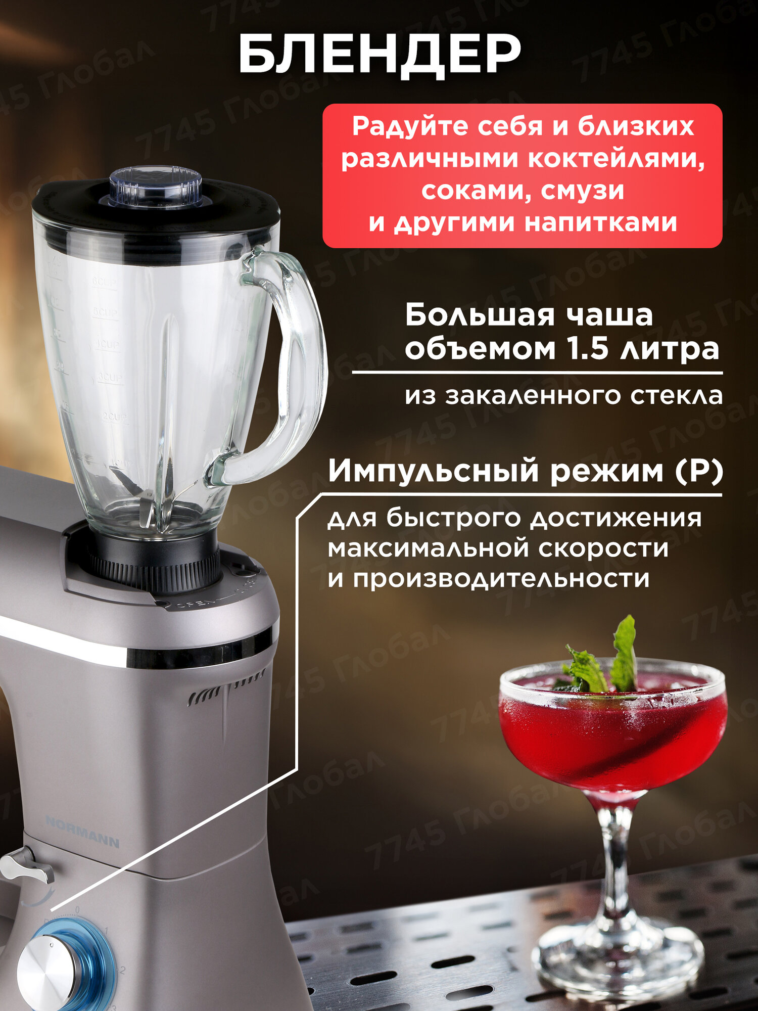 Кухонный комбайн NORMANN AFP-965 с мясорубкой, овощерезкой, блендером и планетарным миксером — это универсальный помощник на кухне, который позволяет быстро и легко приготовить разнообразные блюда. С его помощью вы сможете измельчать и нарезать овощи и фрукты, делать фарш из мяса и рыбы, готовить пюре и смузи, а также замешивать тесто и взбивать крем.