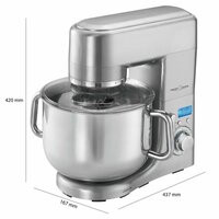 Кухонный комбайн Profi Cook PC-KM 1096 станет прекрасным помощником для любой хозяйки. С ним вы сможете готовить невероятно вкусные и аппетитные блюда, при этом сократив время их приготовление. Основным назначением прибора является изготовление различных видов теста и кремов. Кухонный комбайн Profi Cook PC-KM 1096 качественно и быстро перемешивает различные ингредиенты, что дает возможность избежать комочков. Profi Cook PC-KM 1096 имеет массивный алюминиевый литой корпус и мощный, долговечный профессиональный мотор, 1500 Вт. Комбайн снабжен чашей из нержавеющей стали объемом 10 л дополненная двумя ручками для переноски, что позволит приготовить до 7 кг смеси. 8 скоростей (0-1-2-3-4-5-6-импульсный режим) обеспечат наилучший результат. В наборе также литые из сплава алюминия лопатка и крюки (2 штуки) для тяжелого теста, венчик из нержавеющей стали для взбивания ингредиентов, таких как яичные белки, сливки и прочее. Кухонная машина Profi Cook PC-KM 1096 не занимает много места и при этом позволяет решать множество кулинарных задач. Её возможностей достаточно, чтобы получать густое и жидкое тесто, смешивать ингредиенты и взбивать сливки или яичные белки.