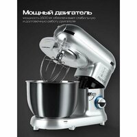 Многофункциональный кухонный комбайн RAGEX R101-900 заменит сразу несколько бытовых приборов. Он сочетает в себе функции планетарного миксера, мясорубки и большого блендера, значительно расширяя возможности во время приготовления блюд. Обладает мотором в 1500 W, который обеспечивает высокую производительность. Имеет плавный пуск и регулировку из 6 скоростей, что позволяет выбрать оптимальный режим работы. В комплекте удобные насадки для замешивания теста, венчик для взбивания, насадки для электромясорубки и чаша миксера объемом 4.5 л. Все детали выполнены из качественной нержавеющей стали, материал мясорубки - алюминий. Толкатель изготовлен из безопасного пищевого пластика. Мощный электрический комбайн подходит для измельчения мяса, овощей, приготовления смузи и коктейлей, однородного фарша и пюре. Дополнен системой защиты при неправильной сборке. Прорезиненные ножки-присоски обеспечивают хорошее сцепление со столешницей, исключая скольжение при вибрации.