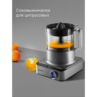 В комплекте есть ребристая соковыжималка для цитрусовых. Вам не придется прикладывать силу, чтобы выдавить сок из фруктов, — достаточно нарезать плоды и поднести к вращающемуся конусу. Так вы сможете каждый день радовать близких свежим соком из грейпфрутов.