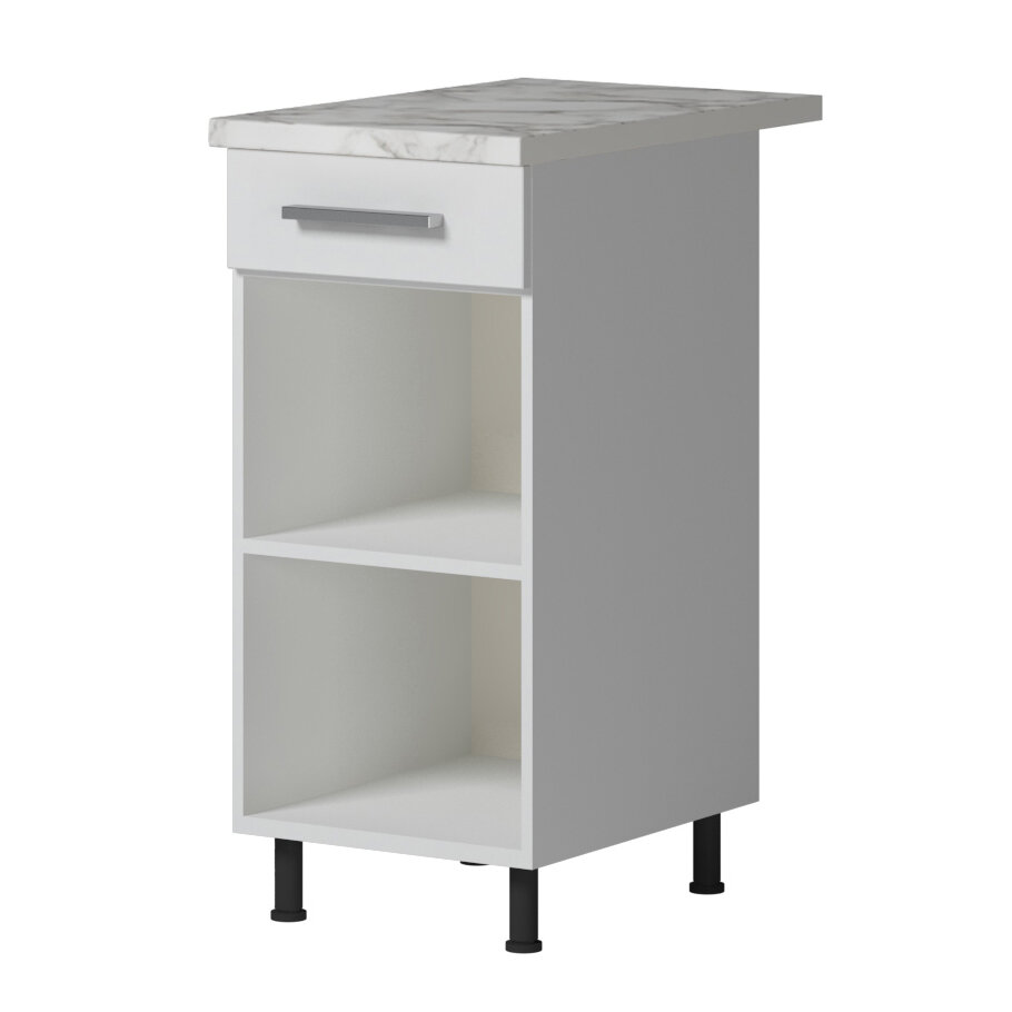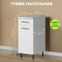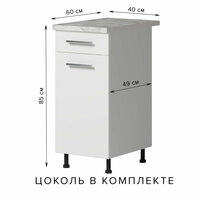 Шкаф напольный кухонный серии Алиса с полкой и ящиком бренда генезис. Стол рабочий впишется в интерьер в стиле лофт и минимализм, скандинавский и классический стиль. Кухонный стол поставляется со столешницей. Внутри шкафа расположена одна полка, сверху выдвижной ящик. Высота столешницы 28 мм. В комплекте с комодом на кухню имеется подробная инструкция, нижний цоколь и весь необходимый крепеж для сборки изделия. Габариты кухонного модуля в сборе: 400*850*600 мм. Глубина шкафа 49 см. Глубина столешницы 60 см. У задней стенки стола предусмотрена ниша 11 см для проведения коммуникаций. Модульный напольный шкаф подойдет домой на кухню и на дачу или в сад. Шкафчик можно использовать на кухне и в коридоре. Также шкаф будет полезен в гардеробной и в прихожей. Напольная мебель подойдет для хранения посуды и кухонной утвари, различных продуктов и круп. Кухонный шкаф Genesis обладает универсальной расцветкой и лаконичным дизайном. Универсальная модульная кухня будет уместно смотреться в любом интерьере и в любой кухне. Удобный шкаф для хранения предназначен для регулярного использования. Из разных кухонных модулей одной цветовой гаммы можно собрать целый кухонный гарнитур.