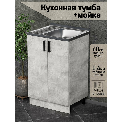Купить Кухонный модуль, Комплект, Тумба на кухню 60х82х43,6 с мойкой 60х50, чаша справа, 0,4 мм, цемент светлый с доставкой по всей России. Кухонный модуль, Комплект, Тумба на кухню 60х82х43,6 с мойкой 60х50, чаша справа, 0,4 мм, цемент светлый: сравнение цен, характеристики, фото, актуальное наличие и цены.