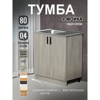 Купить Кухонный модуль, Комплект, Тумба на кухню 80х82х43,6 с мойкой 80х50, чаша слева, 0,4 мм, ясень шимо светлый с доставкой по всей России.