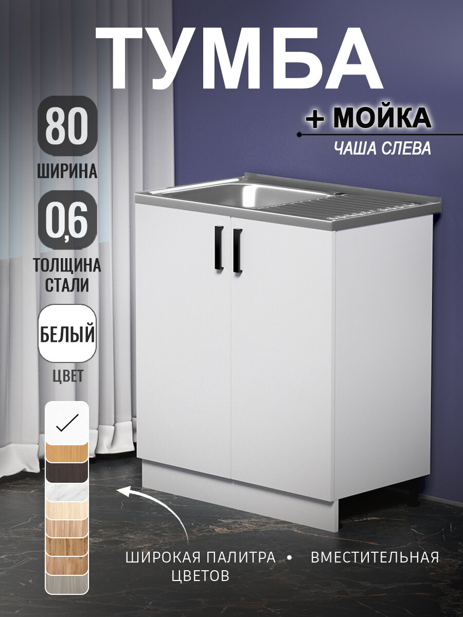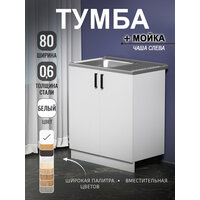 Кухонный модуль, Комплект, Тумба на кухню 80х82х43,6 с мойкой 80х50, чаша слева, 0,6 мм, белый: сравнение цен, характеристики, фото, актуальное наличие и цены.