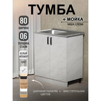 Кухонный модуль, Комплект, Тумба на кухню 80х82х43,6 с мойкой 80х50, чаша слева, 0,6 мм, белый мрамор: сравнение цен, характеристики, фото, актуальное наличие и цены.