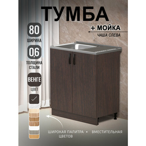 Кухонный модуль, Комплект, Тумба на кухню 80х82х43,6 с мойкой 80х50, чаша слева, 0,6 мм, венге: сравнение цен, характеристики, фото, актуальное наличие и цены.