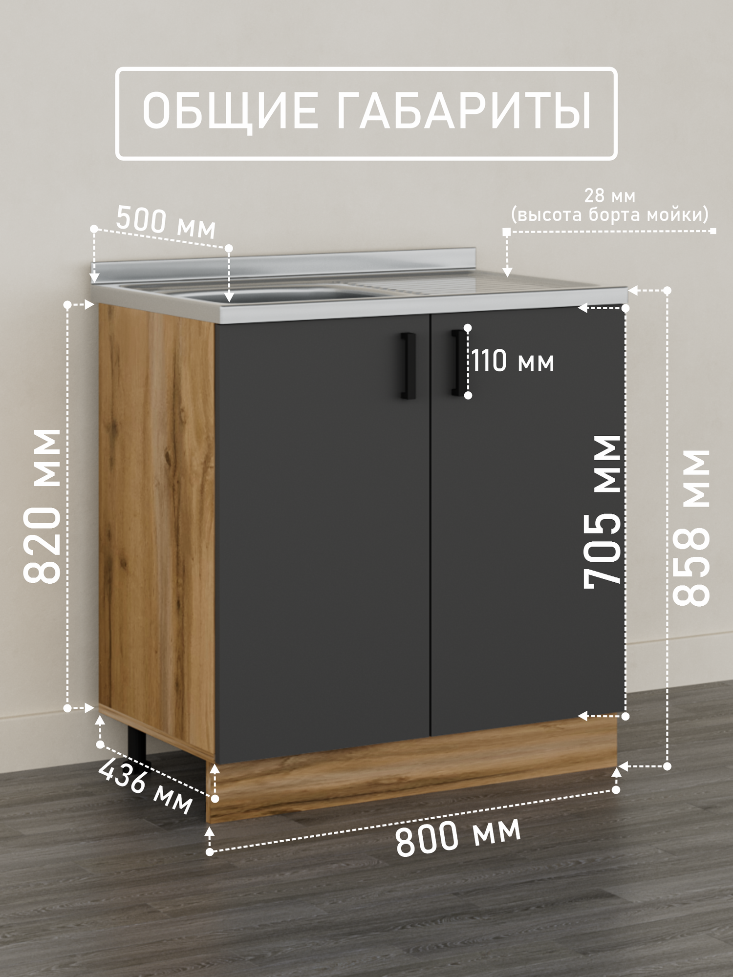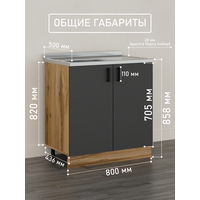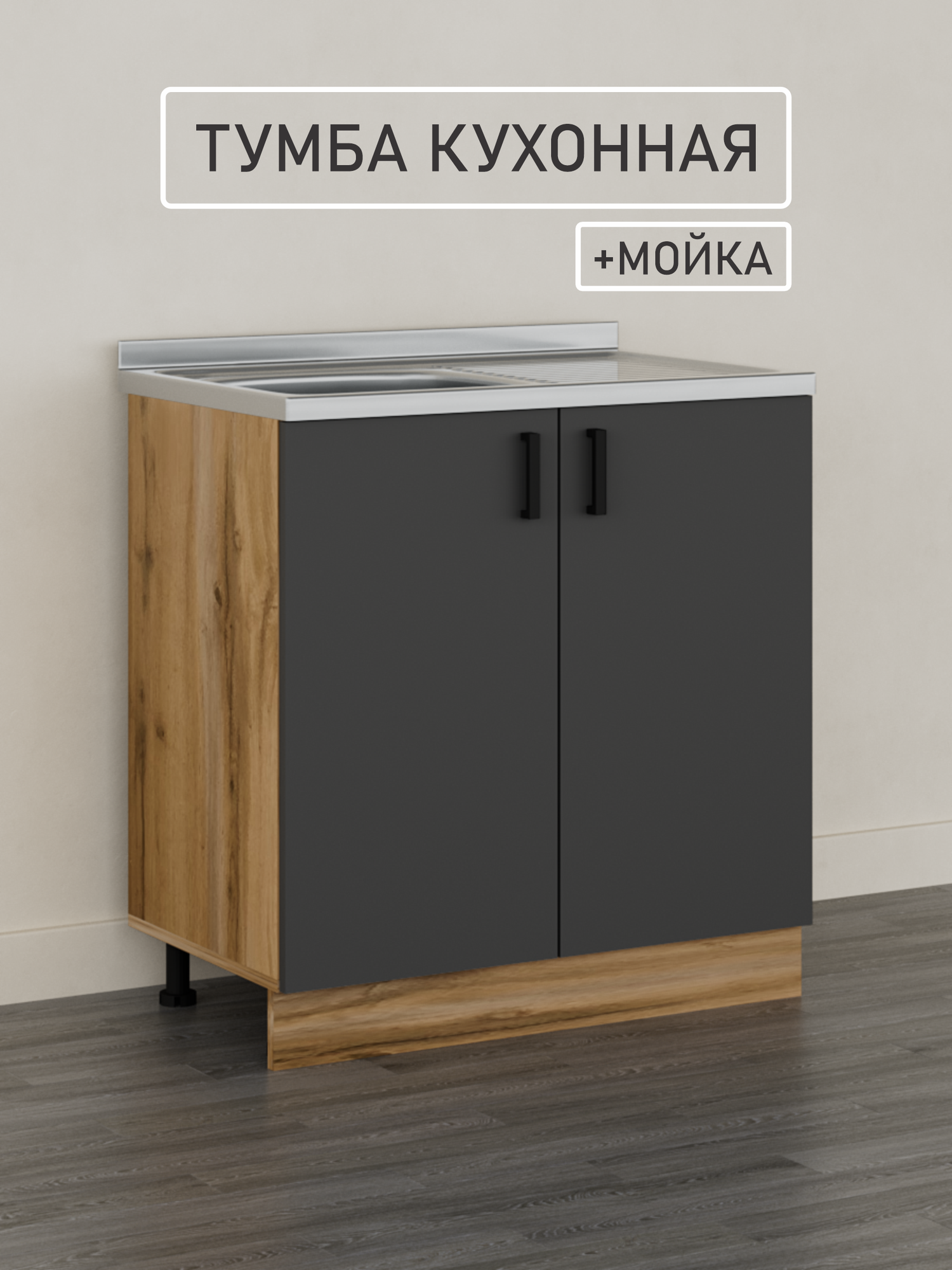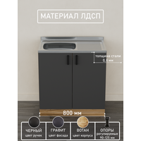 Кухонный модуль, Комплект, Тумба на кухню 80х82х43,6 с мойкой 80х50, чаша слева, 0,8 мм, графит: сравнение цен, характеристики, фото, актуальное наличие и цены.