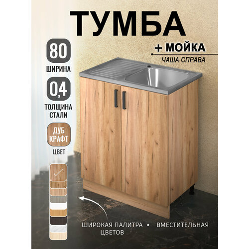 Кухонный модуль, Комплект, Тумба на кухню 80х82х43,6 с мойкой 80х50, чаша справа, 0,4 мм, дуб крафт: сравнение цен, характеристики, фото, актуальное наличие и цены.