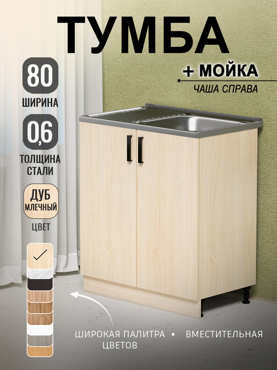 Кухонный модуль, Комплект, Тумба на кухню 80х82х43,6 с мойкой 80х50, чаша справа, 0,6 мм, дуб млечный: сравнение цен, характеристики, фото, актуальное наличие и цены.