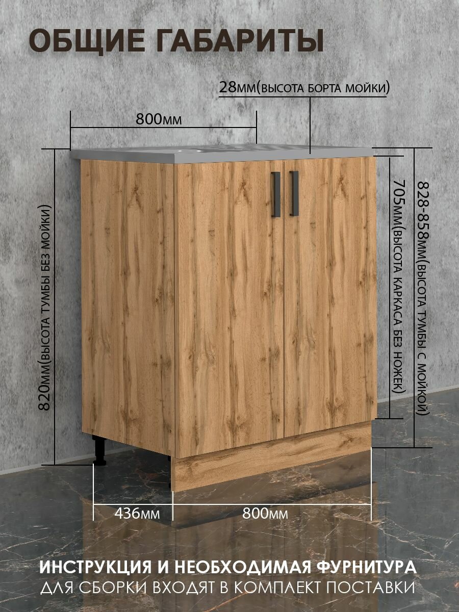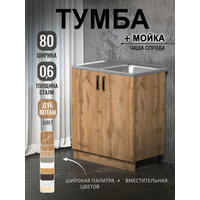Кухонный модуль, Комплект, Тумба на кухню 80х82х43,6 с мойкой 80х50, чаша справа, 0,6 мм, дуб вотан: сравнение цен, характеристики, фото, актуальное наличие и цены.