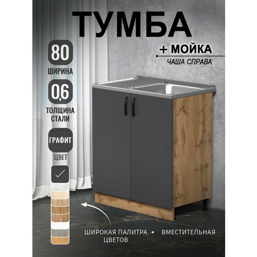 Кухонный модуль, Комплект, Тумба на кухню 80х82х43,6 с мойкой 80х50, чаша справа, 0,6 мм, графит: сравнение цен, характеристики, фото, актуальное наличие и цены.