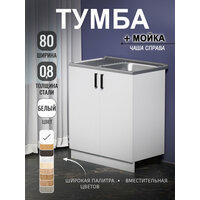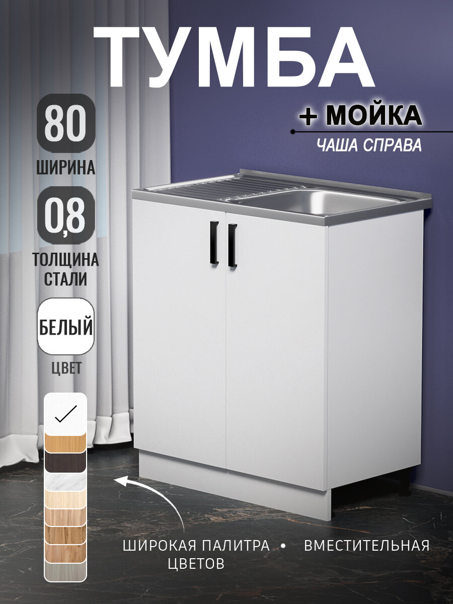 Кухонный модуль, Комплект, Тумба на кухню 80х82х43,6 с мойкой 80х50, чаша справа, 0,8 мм, белый: сравнение цен, характеристики, фото, актуальное наличие и цены.