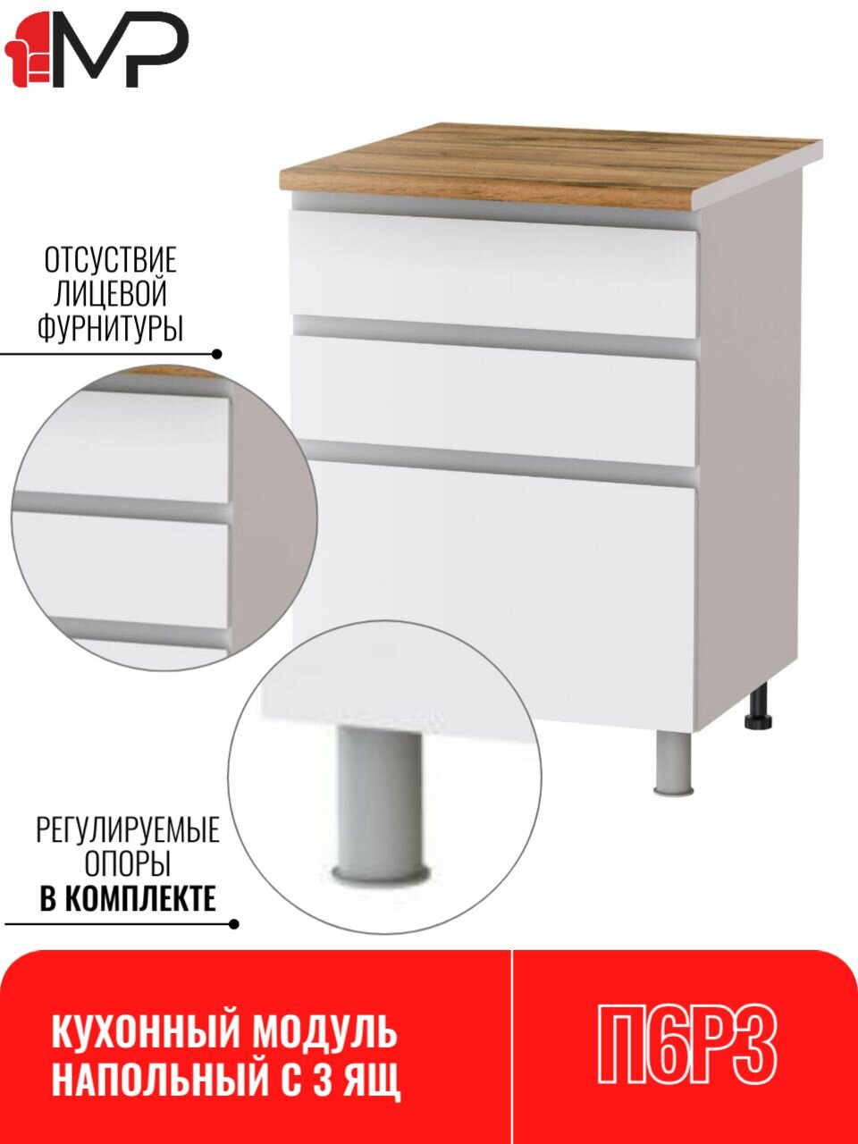 Кухонный модуль ЛДСП напольный с ящиками плейона П6Р3 белый текстурный без столешницы: сравнение цен, характеристики, фото, актуальное наличие и цены.