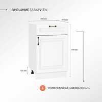 Купить Кухонный шкаф модуль напольный тумба Сурская мебель Ницца 50×47,8×81,6 см с 1-ой дверью и ящиком с доставкой по всей России. Кухонный шкаф модуль напольный тумба Сурская мебель Ницца 50×47,8×81,6 см с 1-ой дверью и ящиком: сравнение цен, характеристики, фото, актуальное наличие и цены.