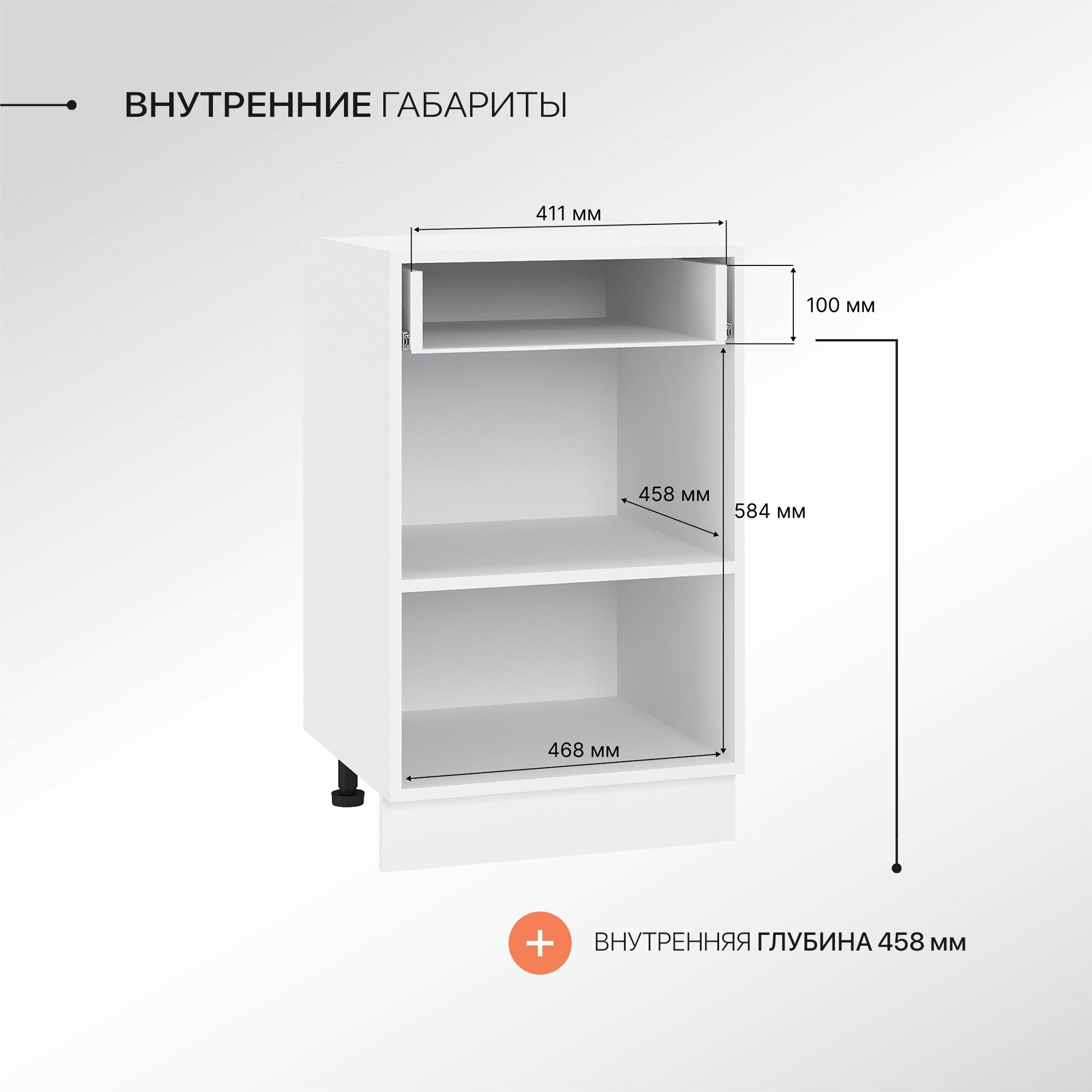 Данный кухонный модуль может использоваться самостоятельно, либо в комбинации с другими навесными кухонными шкафами и напольными тумбами, создавая полноценный кухонный гарнитур. При этом не требуется создание сложного проекта, достаточно выбрать необходимые вам модули для кухни или воспользоваться одним из готовых решений, представленных в нашем магазине.