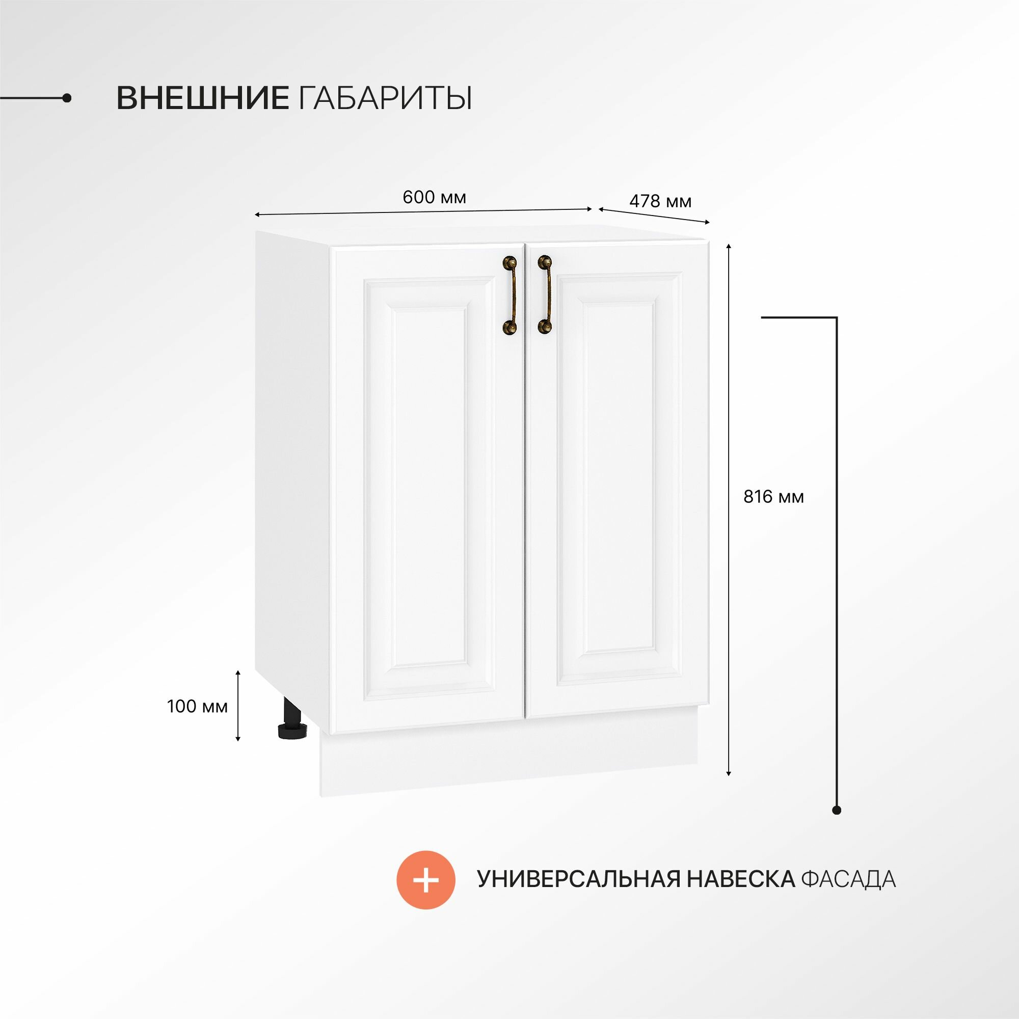 Данный кухонный модуль может использоваться самостоятельно, либо в комбинации с другими навесными кухонными шкафами и напольными тумбами, создавая полноценный кухонный гарнитур. При этом не требуется создание сложного проекта, достаточно выбрать необходимые вам модули для кухни или воспользоваться одним из готовых решений, представленных в нашем магазине.