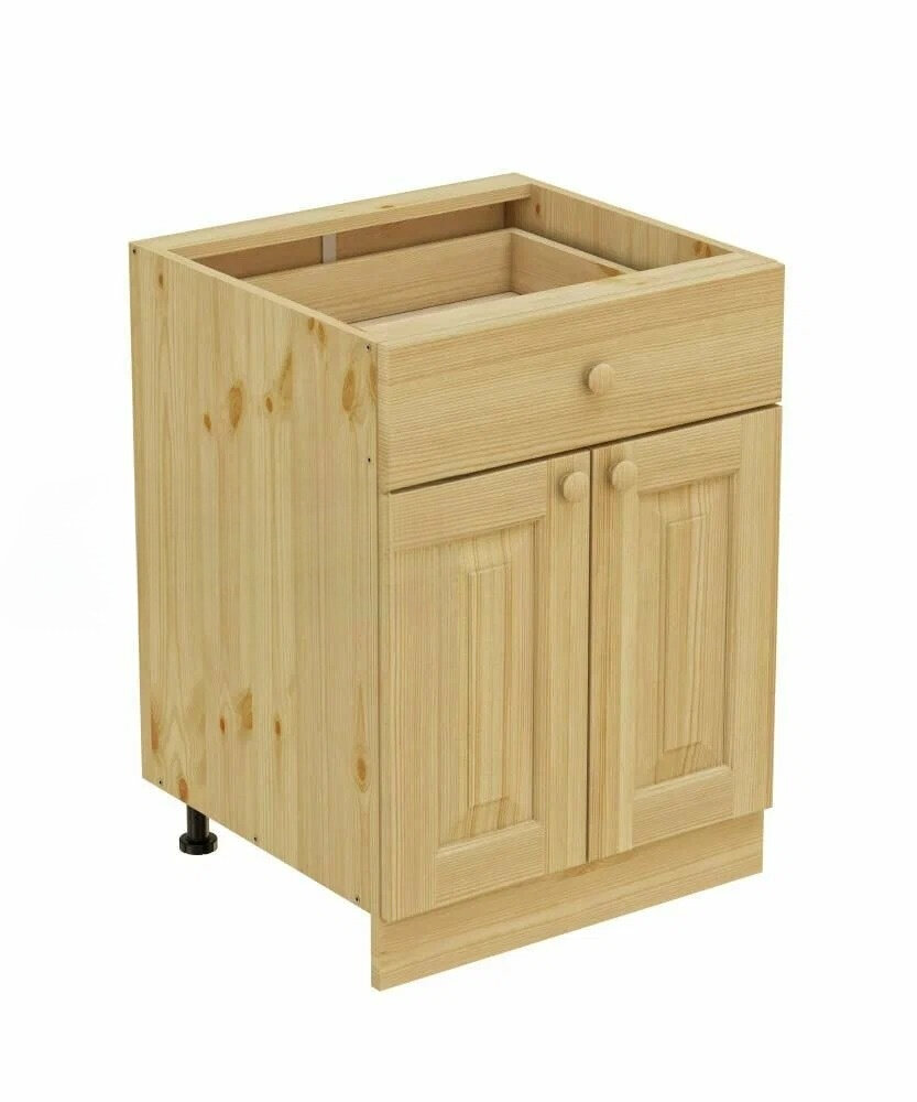 Кухонный модуль напольная тумба 60х56х82, шкаф 2 двери + 1 ящик, сосна бесцветный лак: сравнение цен, характеристики, фото, актуальное наличие и цены.