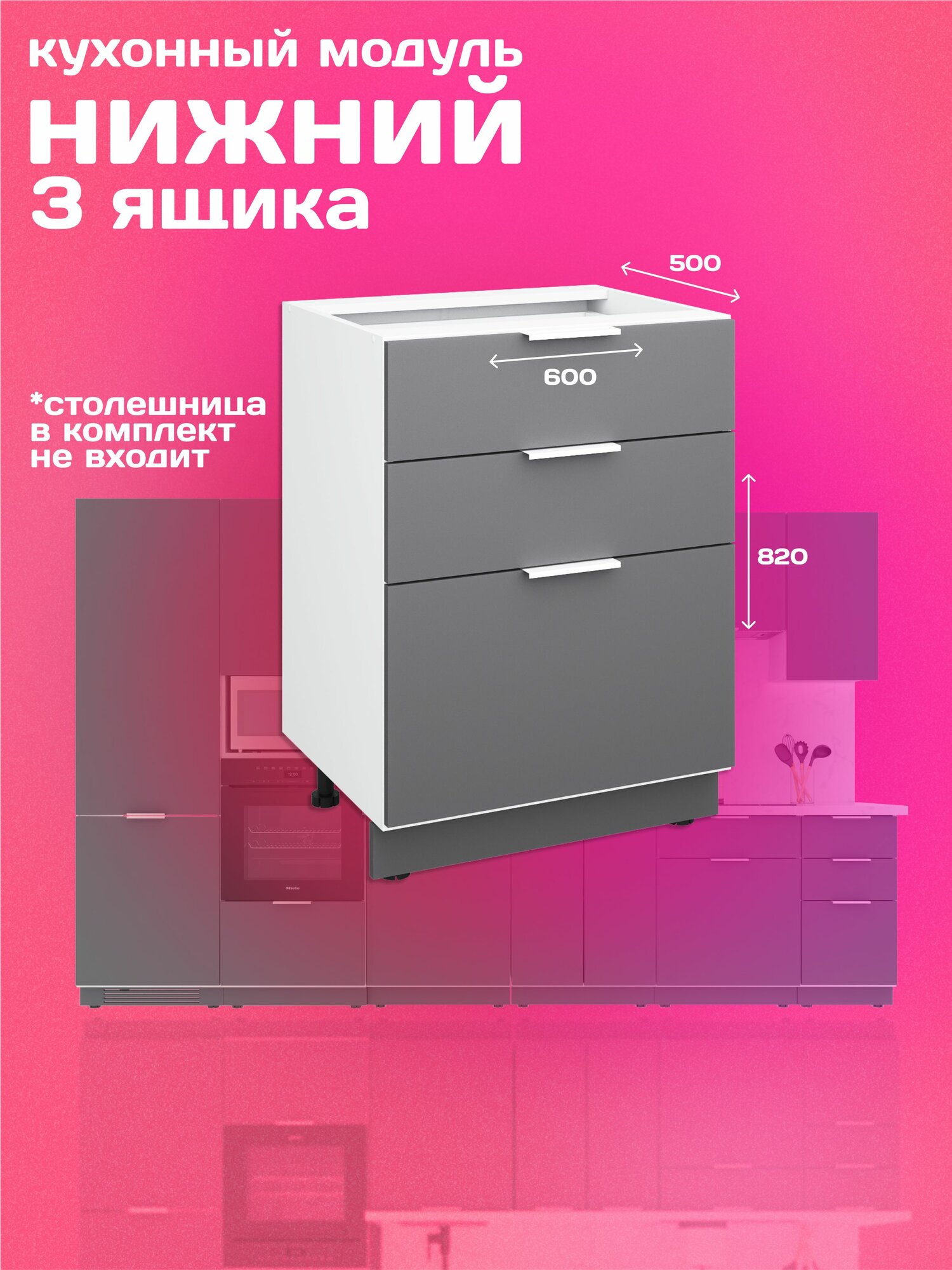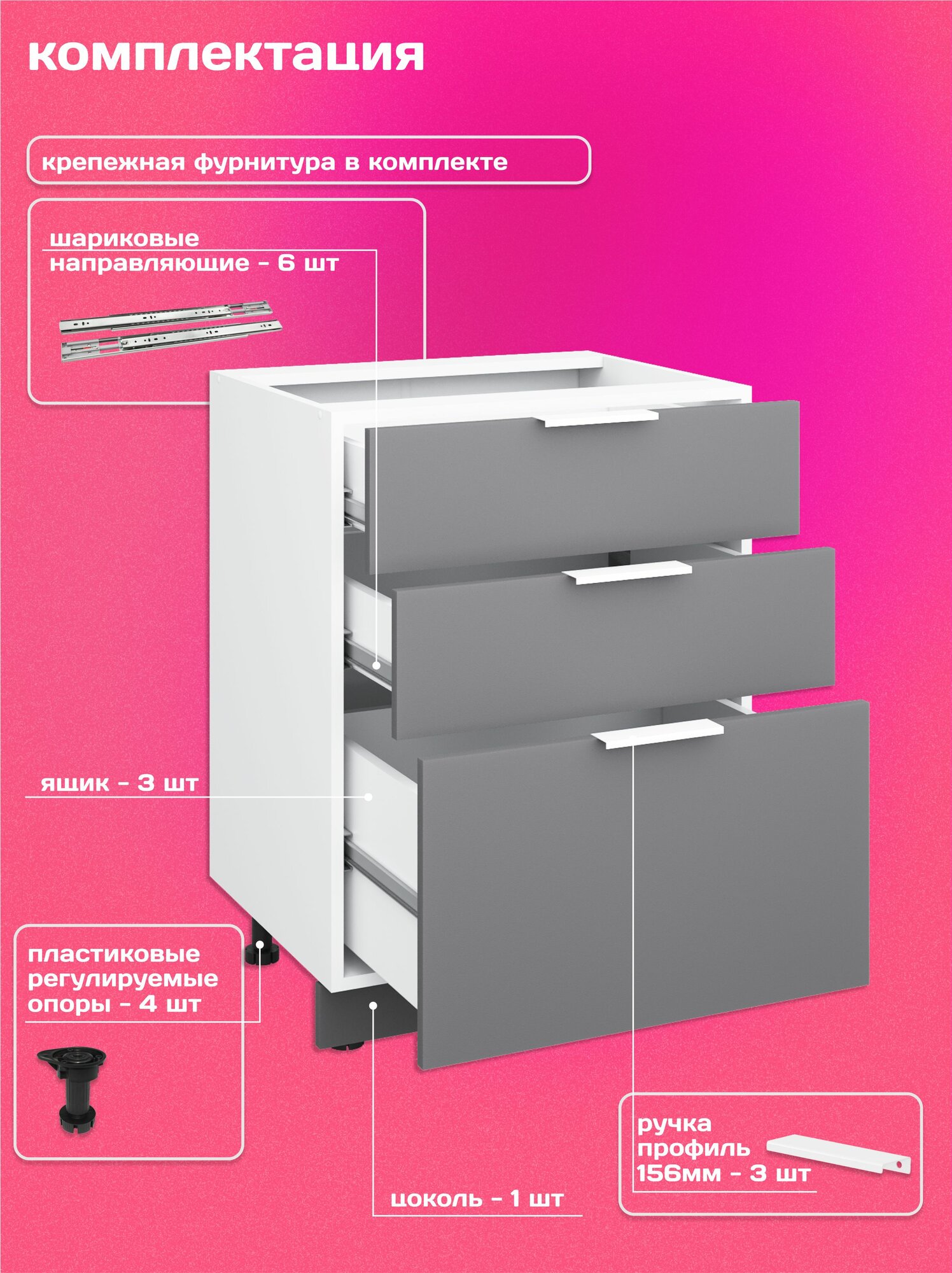 Кухонный модуль напольный 60см три ящика, графит матовый гладкий: сравнение цен, характеристики, фото, актуальное наличие и цены.