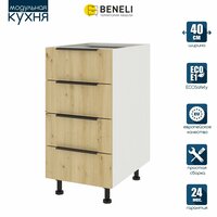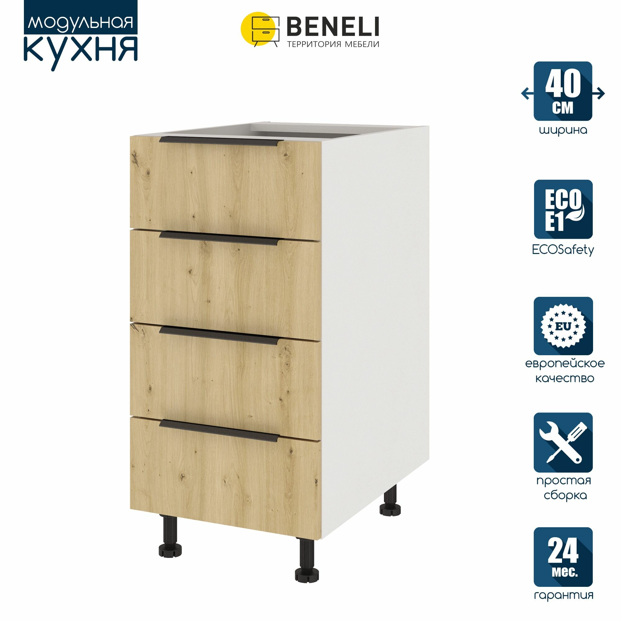 Купить Кухонный модуль напольный Beneli COLOR, Дуб дикий/Белый, с 4 ящиками, 40х57,6х82 см с доставкой по всей России.