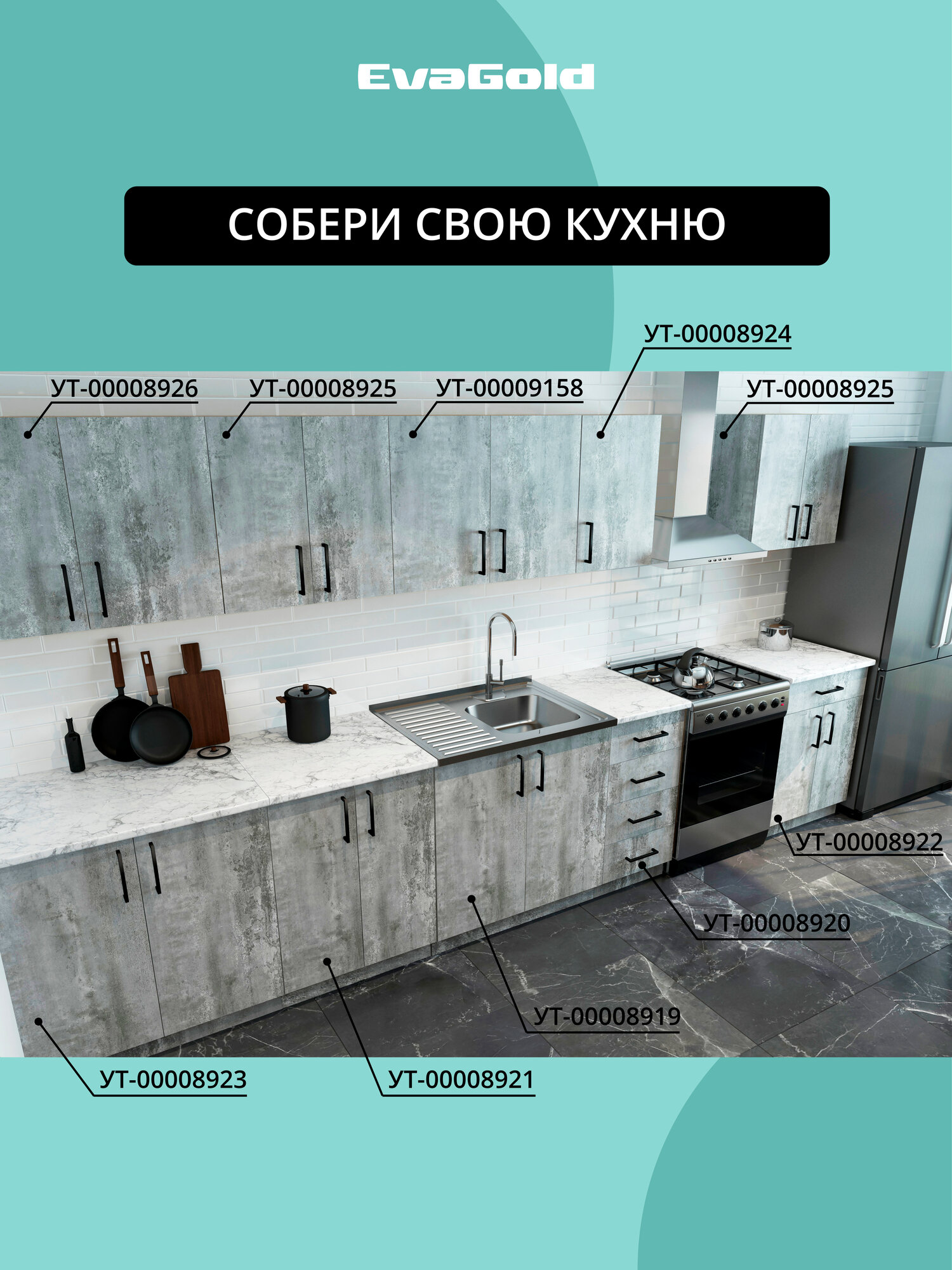 Купить Кухонный модуль напольный EvaGold 80 см, модель ND401.14 цемент светлый для кухни с доставкой по всей России. Кухонный модуль напольный EvaGold 80 см, модель ND401.14 цемент светлый для кухни: сравнение цен, характеристики, фото, актуальное наличие и цены.