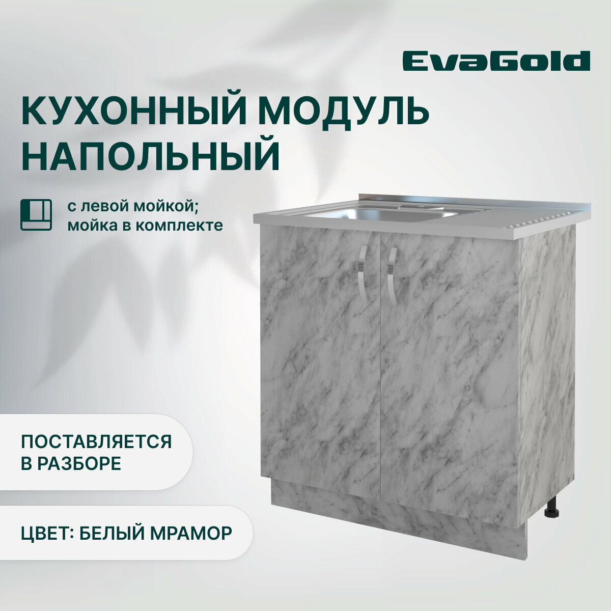 Кухонный модуль напольный EvaGold Белый мрамор с левой мойкой 80х84х60 - это модульная разборная мебель для кухни, которая станет оптимальным решением для тех, кто ценит функциональность и удобство.