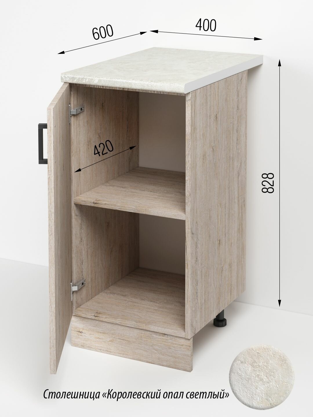 Кухня Пикар — это стильное и универсальное решение для любого интерьера. Она создаёт ощущение чистоты, свежести и простора и идеально подходит для небольших помещений, так как светлые оттенки визуально расширяют пространство. Мы подобрали для Вас самые универсальные модули и объединили их в готовые и практичные решения. Наличие всех необходимых модулей позволит Вам создать комфортный уют для себя и своей семьи. Наша кухня изготовлена полностью из матового ЛДСП цвета пикар, ручка пластиковая черная скоба, в модулях с ящиками использованы роликовые направляющие, петли с доводчиками для плавного и бесшумного закрывания, столешница (цвет – Королевский опал светлый) идет в комплекте. Модуль – Рабочий стол 1 дверь на 40см, доставляется в разборе с подробной инструкцией. Обратите внимание – дверь может быть, как с правым, так и с левым открыванием, решаете при сборке!