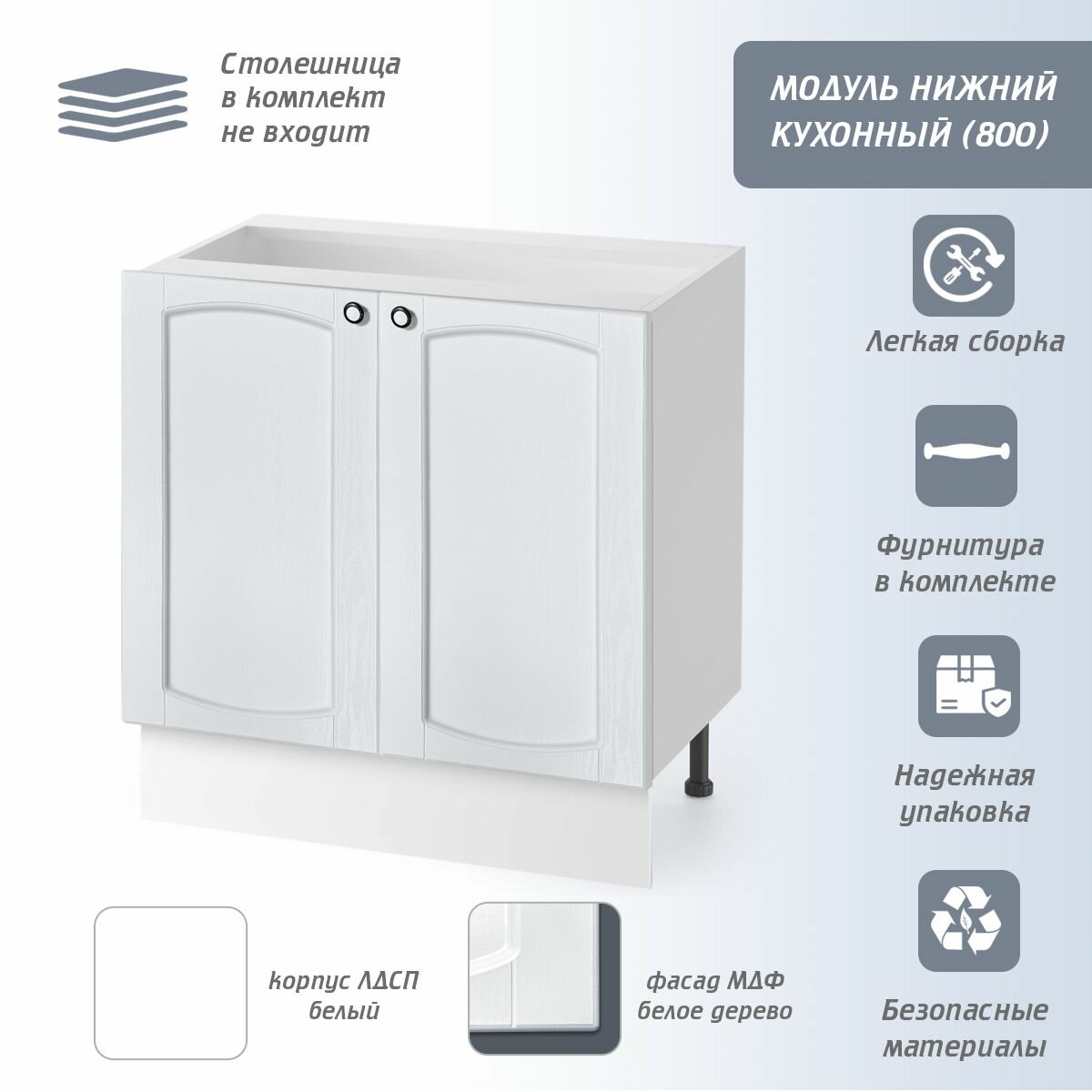 Кухонный модуль напольный «Питерские кухни», 80 см, цвет Белое дерево, ЛДСП, фасад МДФ: сравнение цен, характеристики, фото, актуальное наличие и цены.