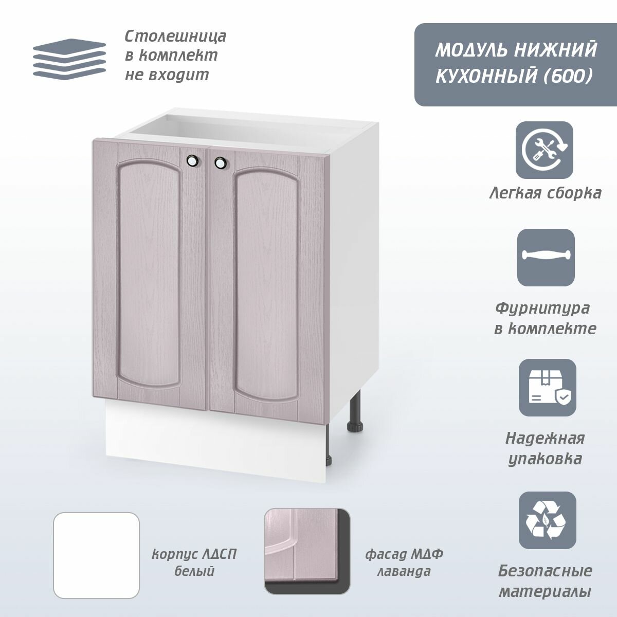 Купить Кухонный модуль напольный «Питерские кухни», 60 см, цвет Лаванда, ЛДСП, фасад МДФ с доставкой по всей России.