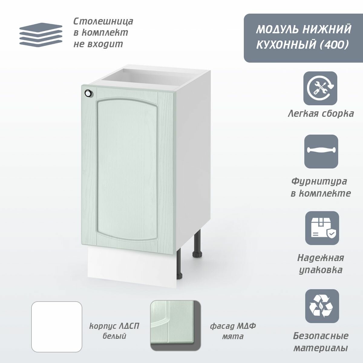 Кухонный модуль напольный «Питерские кухни», 40 см, цвет Мята, ЛДСП, фасад МДФ: сравнение цен, характеристики, фото, актуальное наличие и цены.