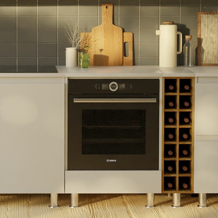 Модуль под духовой шкаф оснащен достаточным пространством для размещения большинства современных духовых шкафов. Открытая задняя стенка рассчитана на монтаж необходимых коммуникаций, дно белого шкафа под духовой шкаф выдержит необходимую нагрузку, что позволит использовать его без опасений. Вместительный ящик под духовым шкафом позволит организовать все кухонные приборы в чистоте и порядке