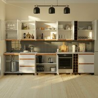 Модуль под духовой шкаф оснащен достаточным пространством для размещения большинства современных духовых шкафов. Открытая задняя стенка рассчитана на монтаж необходимых коммуникаций, дно белого шкафа под духовой шкаф выдержит необходимую нагрузку, что позволит использовать его без опасений. Вместительный ящик под духовым шкафом позволит организовать все кухонные приборы в чистоте и порядке