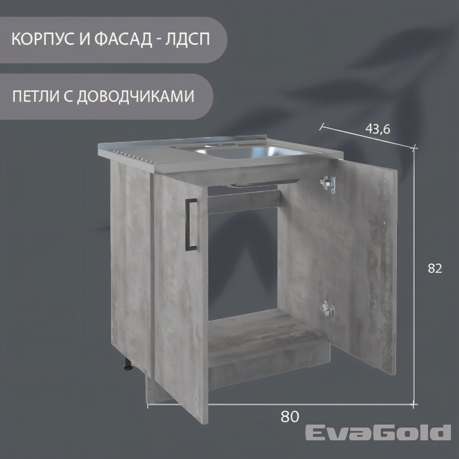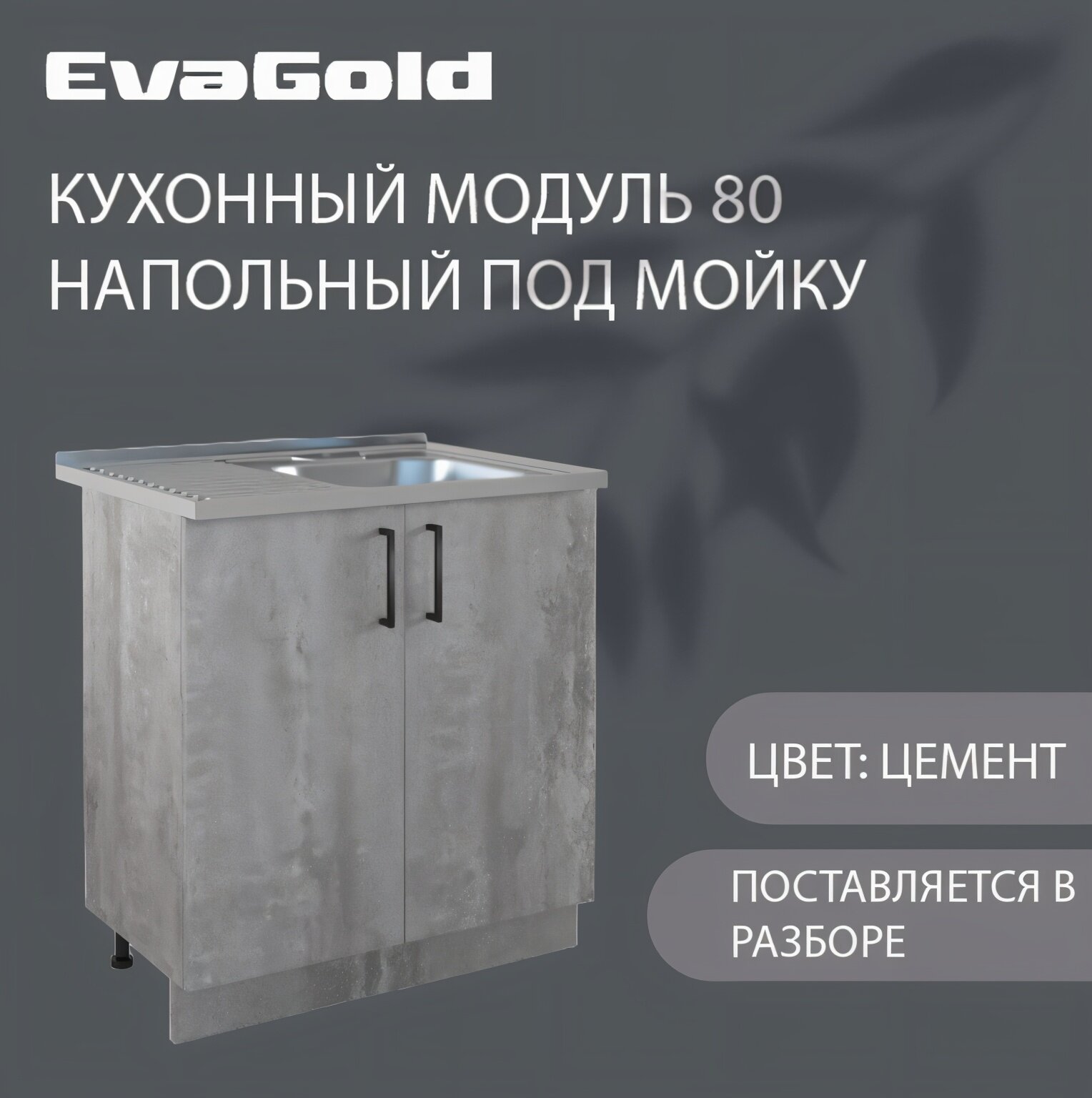 Кухонный модуль напольный под мойку EvaGold 80 см, модель ND401.17 цемент для кухни без мойки: сравнение цен, характеристики, фото, актуальное наличие и цены.