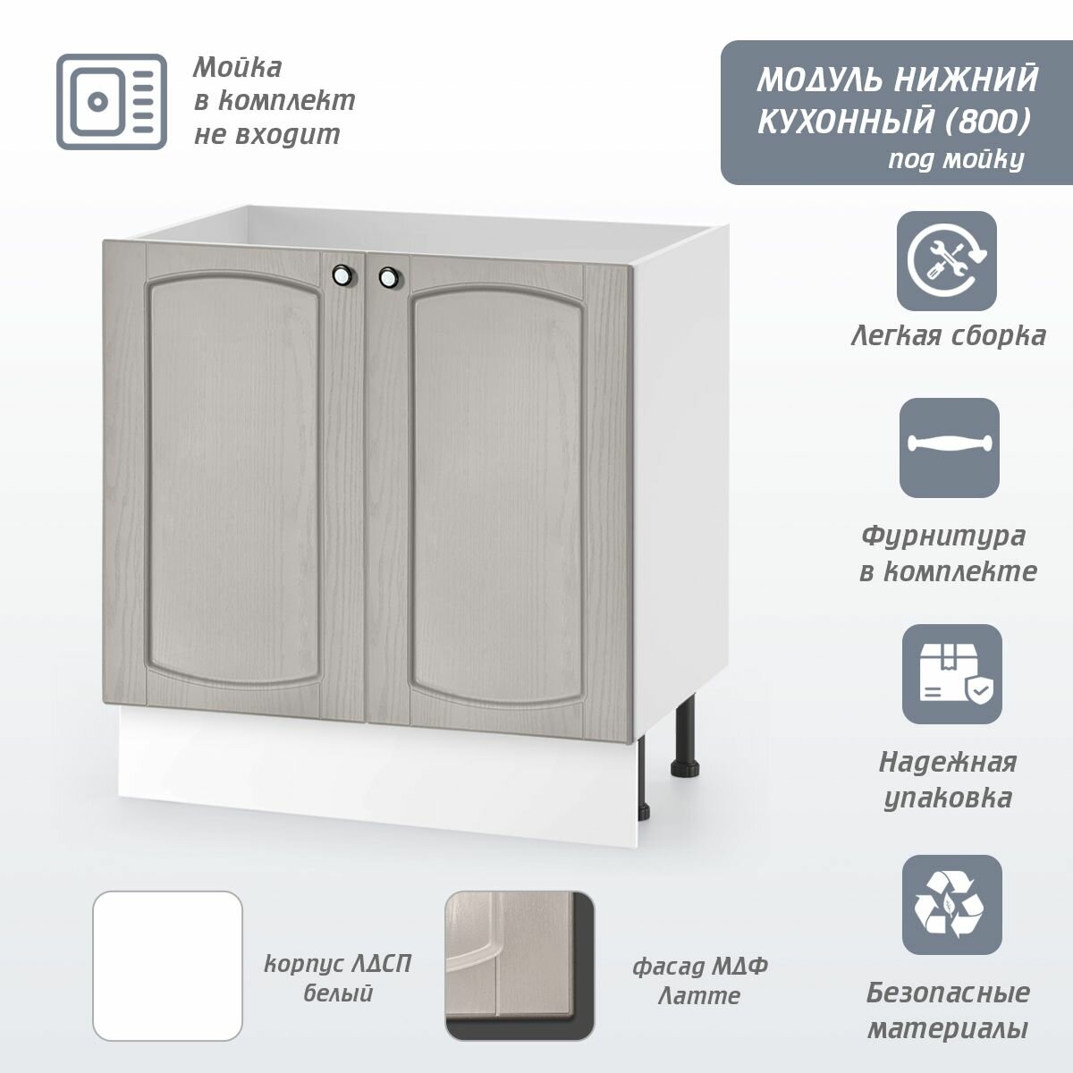 Кухонный модуль напольный под мойку «Питерские кухни», 80 см, цвет Латте, ЛДСП, фасад МДФ: сравнение цен, характеристики, фото, актуальное наличие и цены.