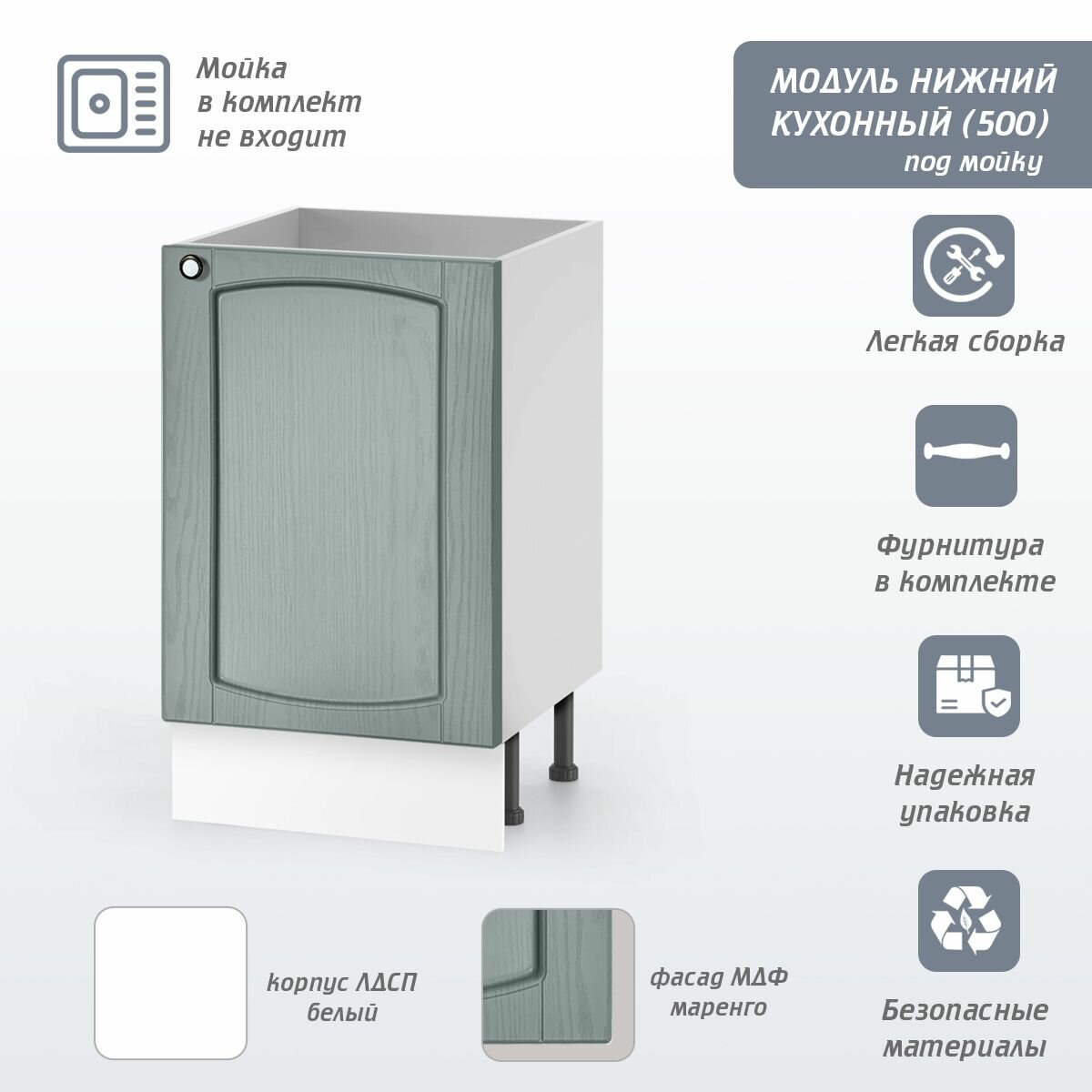 Кухонный модуль напольный под мойку «Питерские кухни», 50 см, цвет Маренго, ЛДСП, фасад МДФ: сравнение цен, характеристики, фото, актуальное наличие и цены.