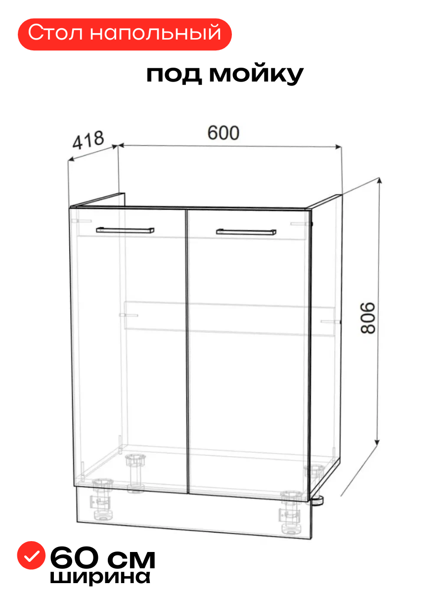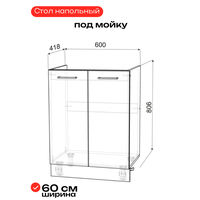 Модуль кухонный напольный под нержавеющую мойку ширина 60 см, Тумба под накладную кухонную мойку 60х60 см, Тумба для кухни под мойку