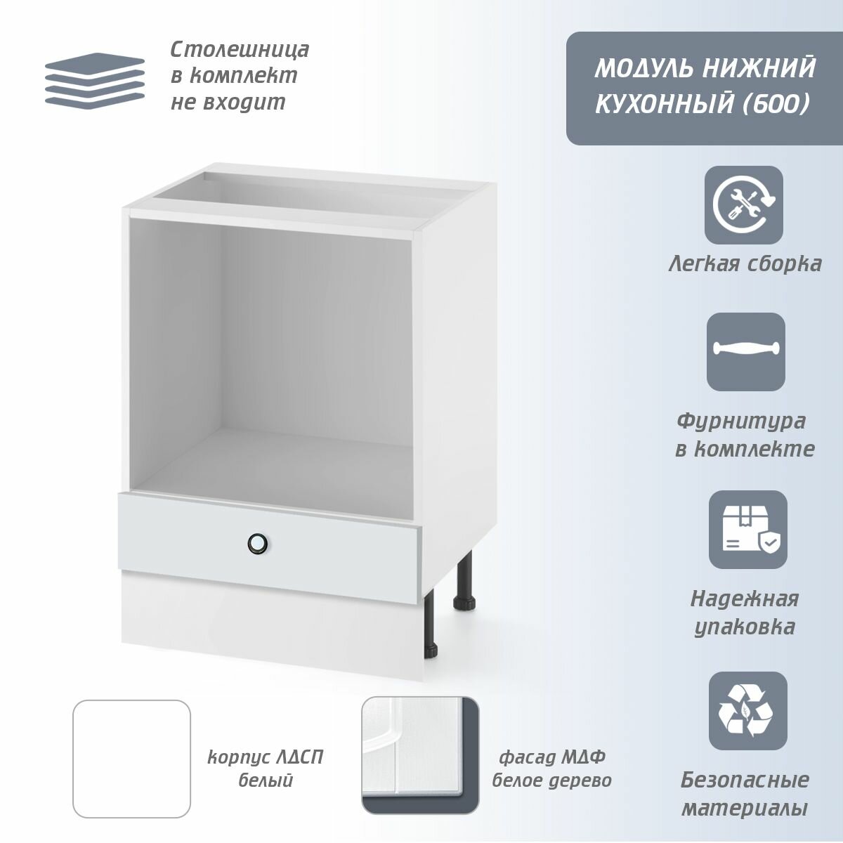 Кухонный модуль напольный под технику «Питерские кухни», 60 см, цвет Белое дерево, ЛДСП, фасад МДФ: сравнение цен, характеристики, фото, актуальное наличие и цены.
