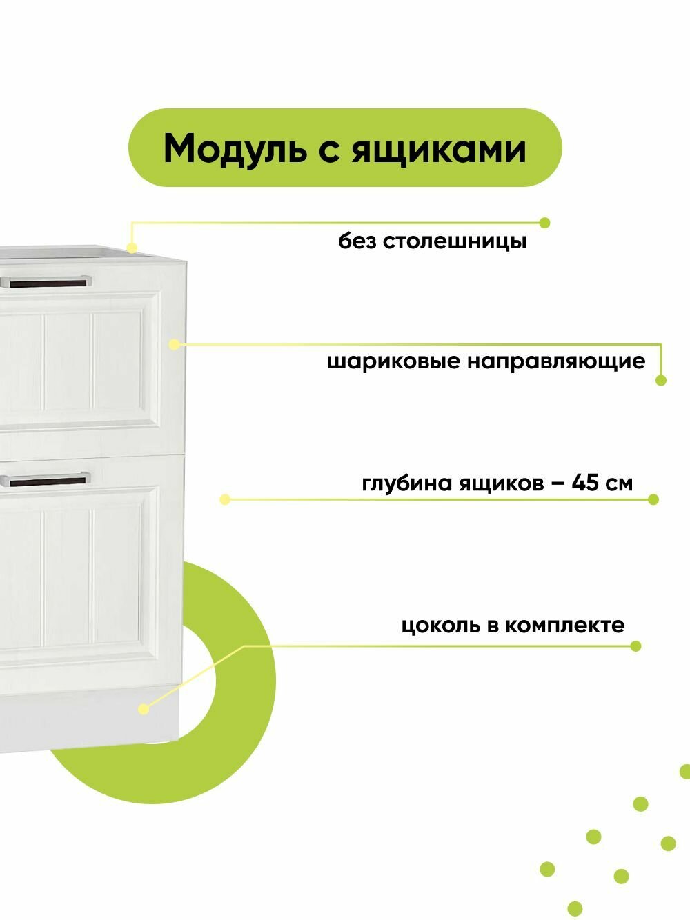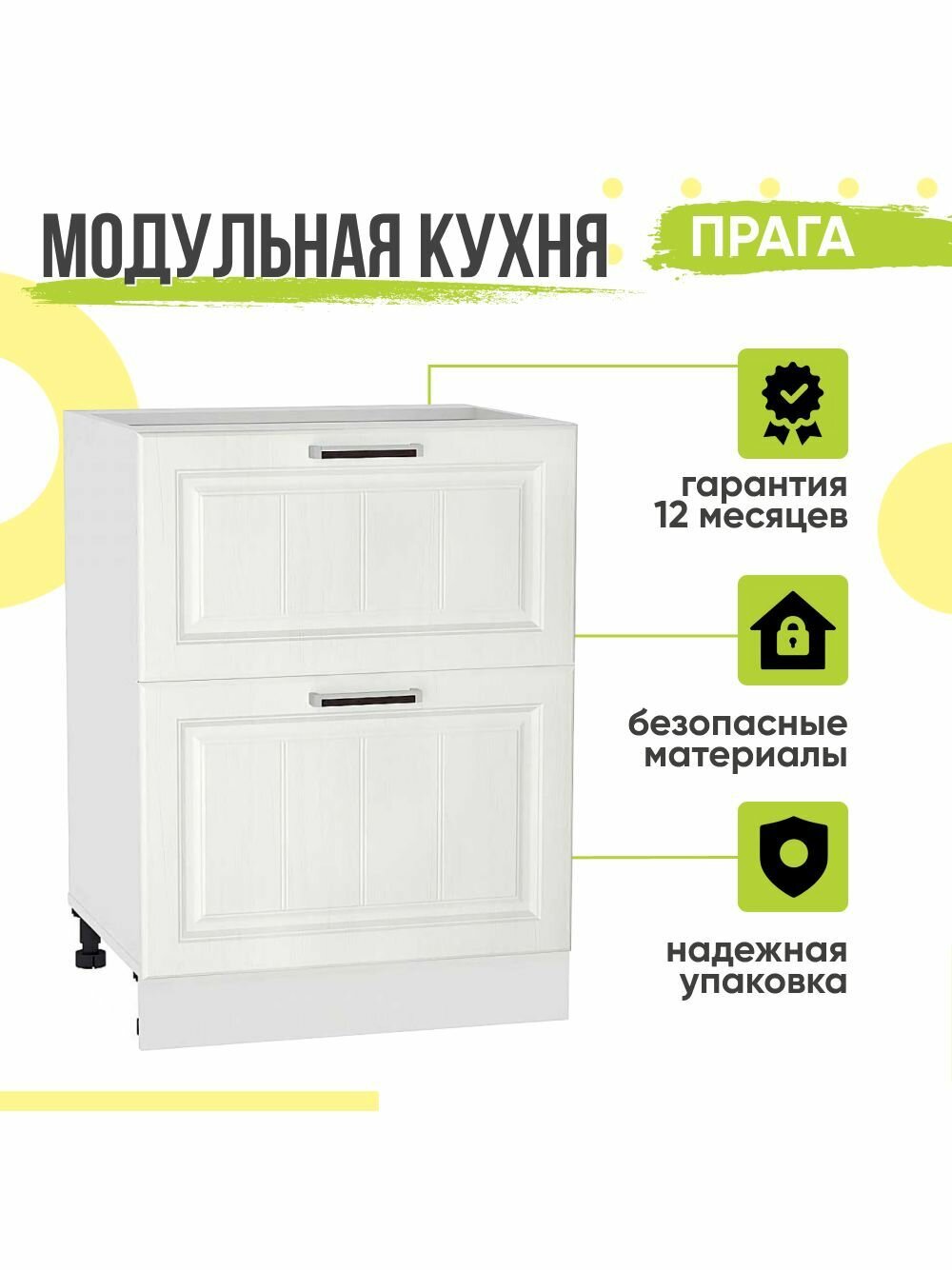 Купить Кухонный модуль напольный Прага, 60х48х81,6 мм, с ящиками, Белое дерево, Сурская мебель с доставкой по всей России.