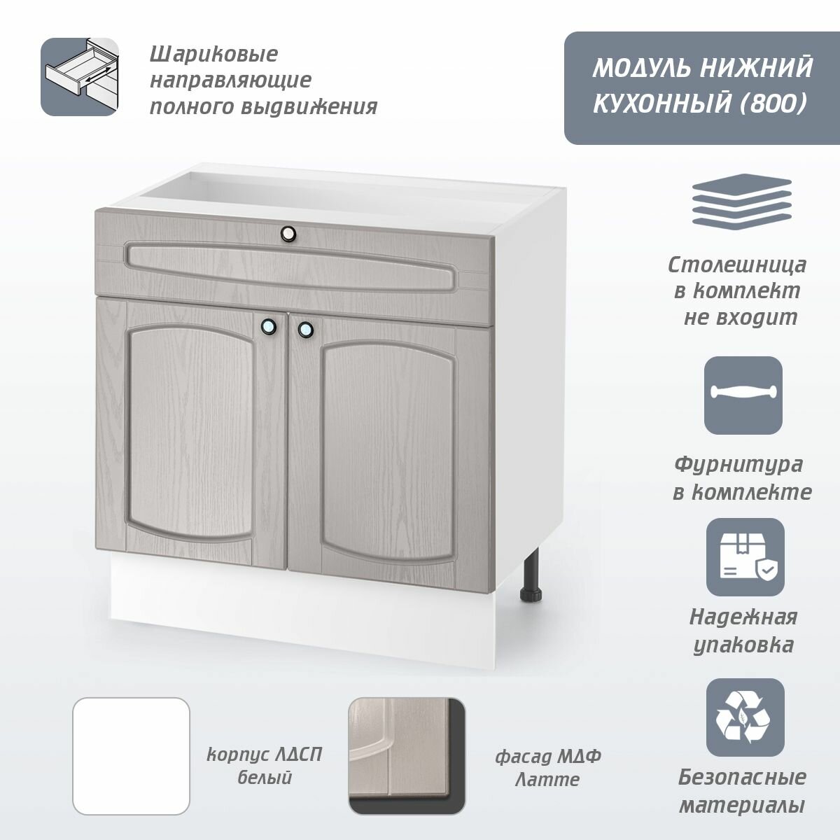 Кухонный модуль напольный с 1 ящиком «Питерские кухни», 80 см, цвет Латте, ЛДСП, фасад МДФ: сравнение цен, характеристики, фото, актуальное наличие и цены.