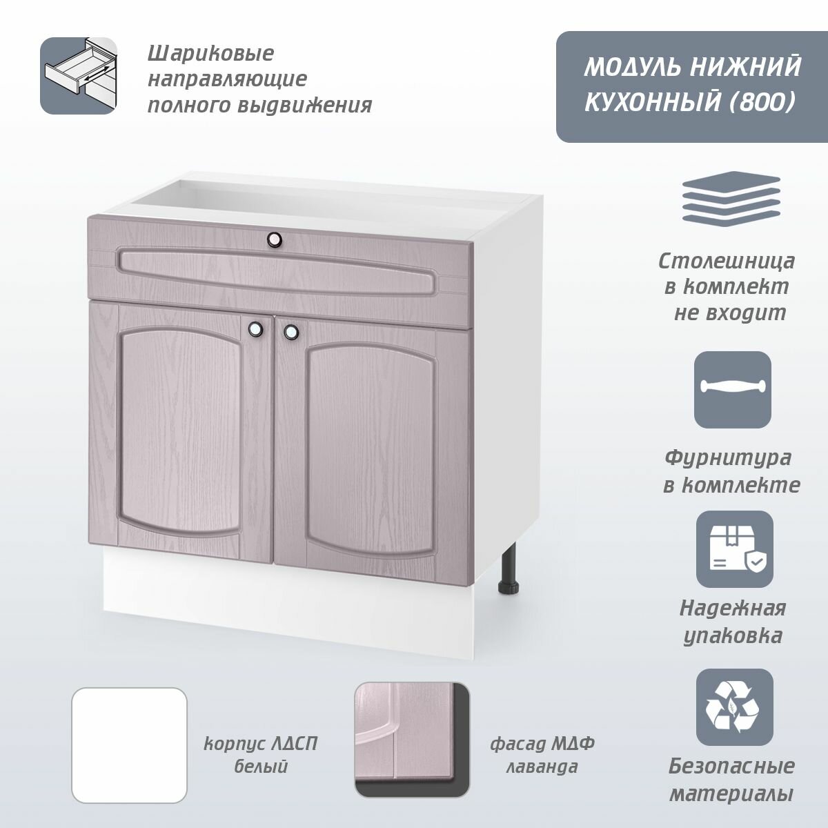 Купить Кухонный модуль напольный с 1 ящиком «Питерские кухни», 80 см, цвет Лаванда, ЛДСП, фасад МДФ с доставкой по всей России. Кухонный модуль напольный с 1 ящиком «Питерские кухни», 80 см, цвет Лаванда, ЛДСП, фасад МДФ: сравнение цен, характеристики, фото, актуальное наличие и цены.