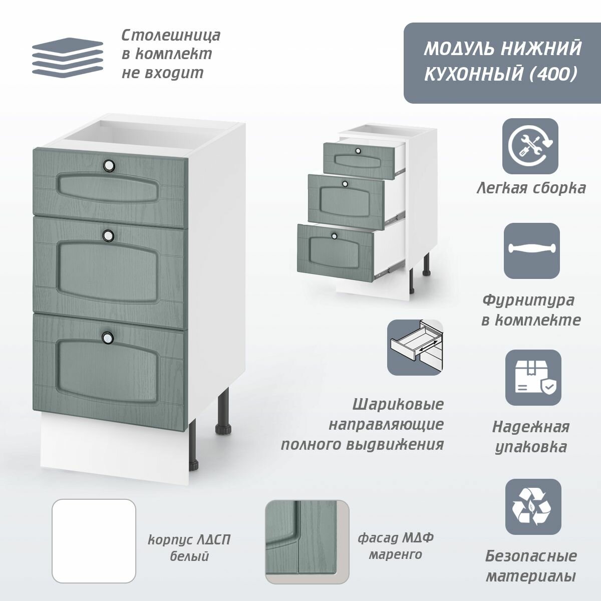 Кухонный модуль напольный с 3 ящиками «Питерские кухни», 40 см, цвет Маренго, ЛДСП, фасад МДФ: сравнение цен, характеристики, фото, актуальное наличие и цены.