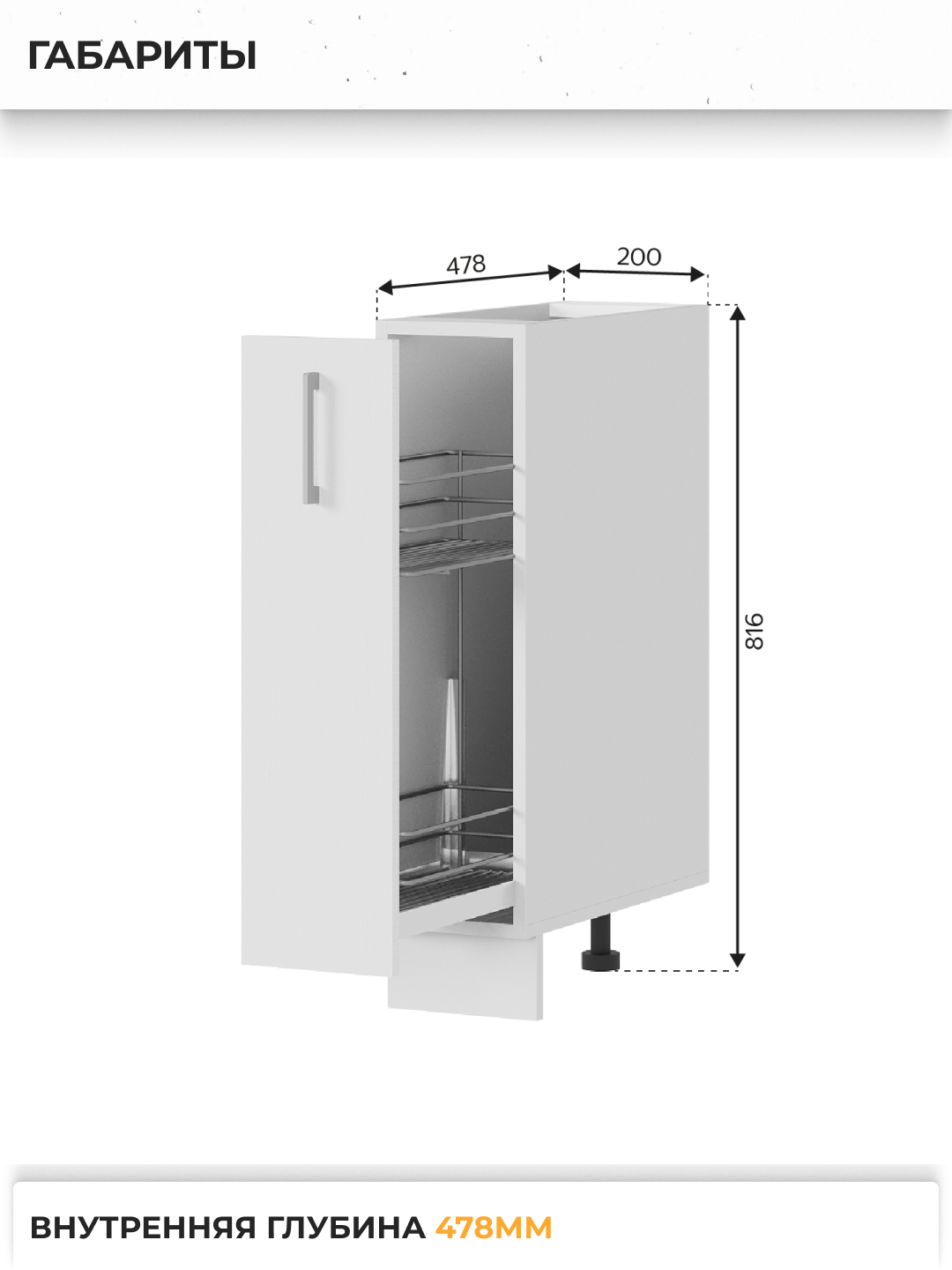 Кухонный модуль Стендмебель ШНБ200 - это идеальное решение для тех, кто ценит качество и удобство. Этот модуль выполнен в цвете софт вайт, что придает ему элегантный и современный вид. Он имеет размеры 20х84х50.6 см, что позволяет разместить его в любом удобном месте на кухне.