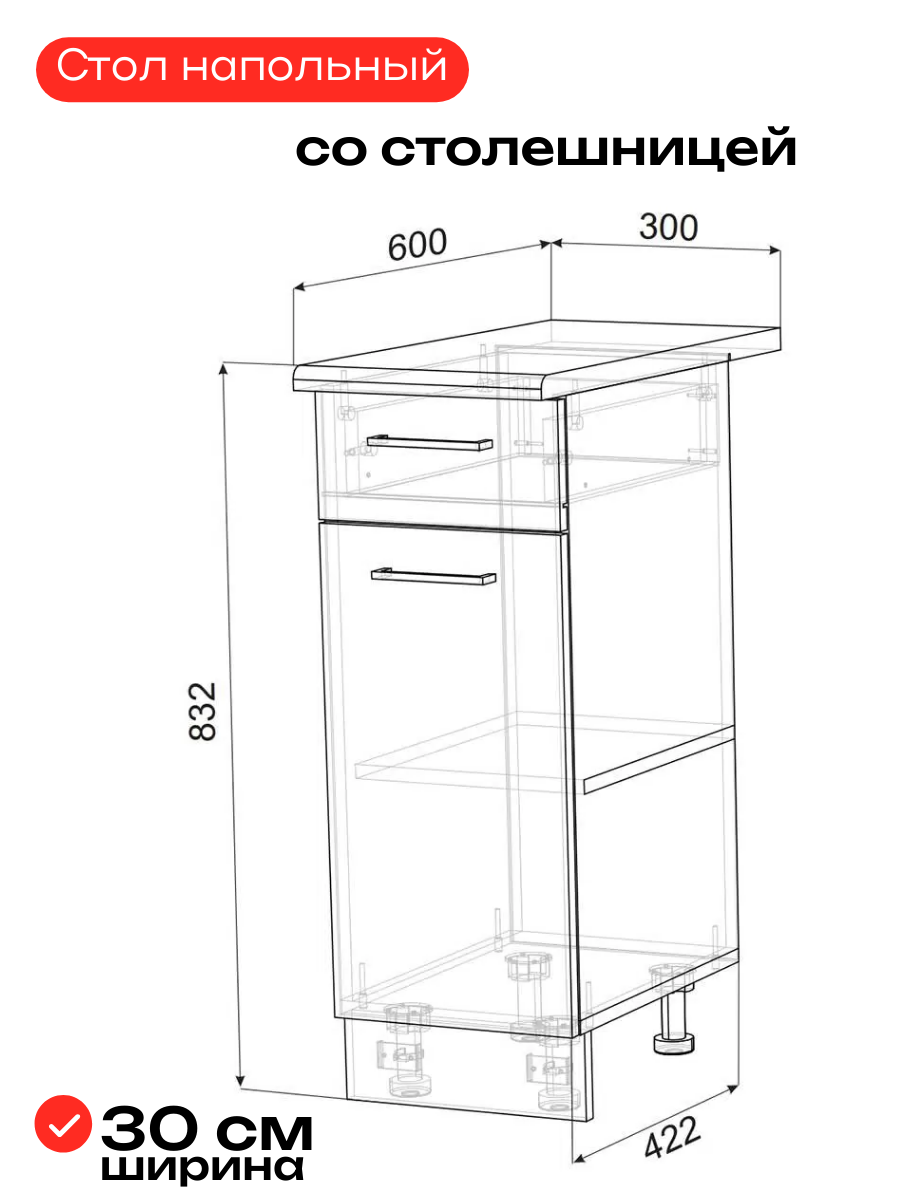 Кухонный модуль напольный со столешницей, шириной 30 см, Брауни Н300-1Я: сравнение цен, характеристики, фото, актуальное наличие и цены.