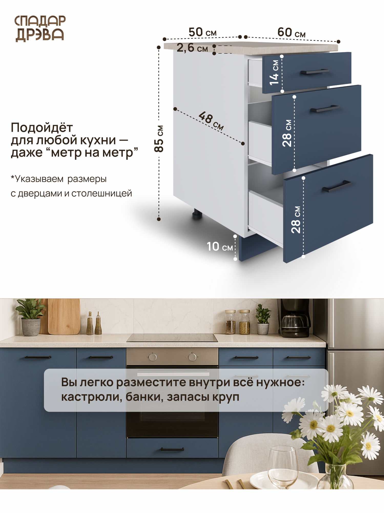Кухонный модуль с ящиками, СпадарДрэва, модульная кухня, ЛДСП, 500 мм: сравнение цен, характеристики, фото, актуальное наличие и цены.
