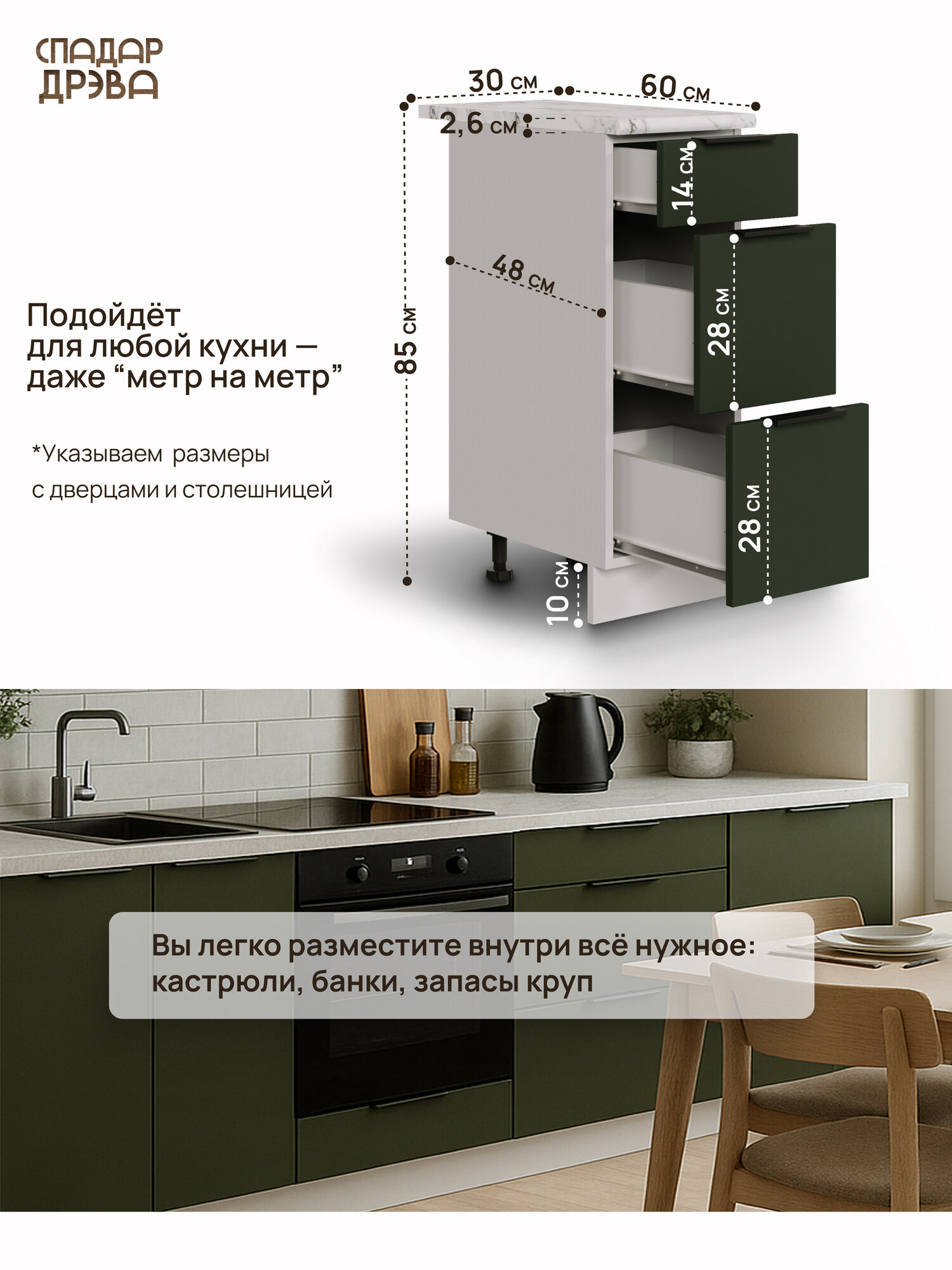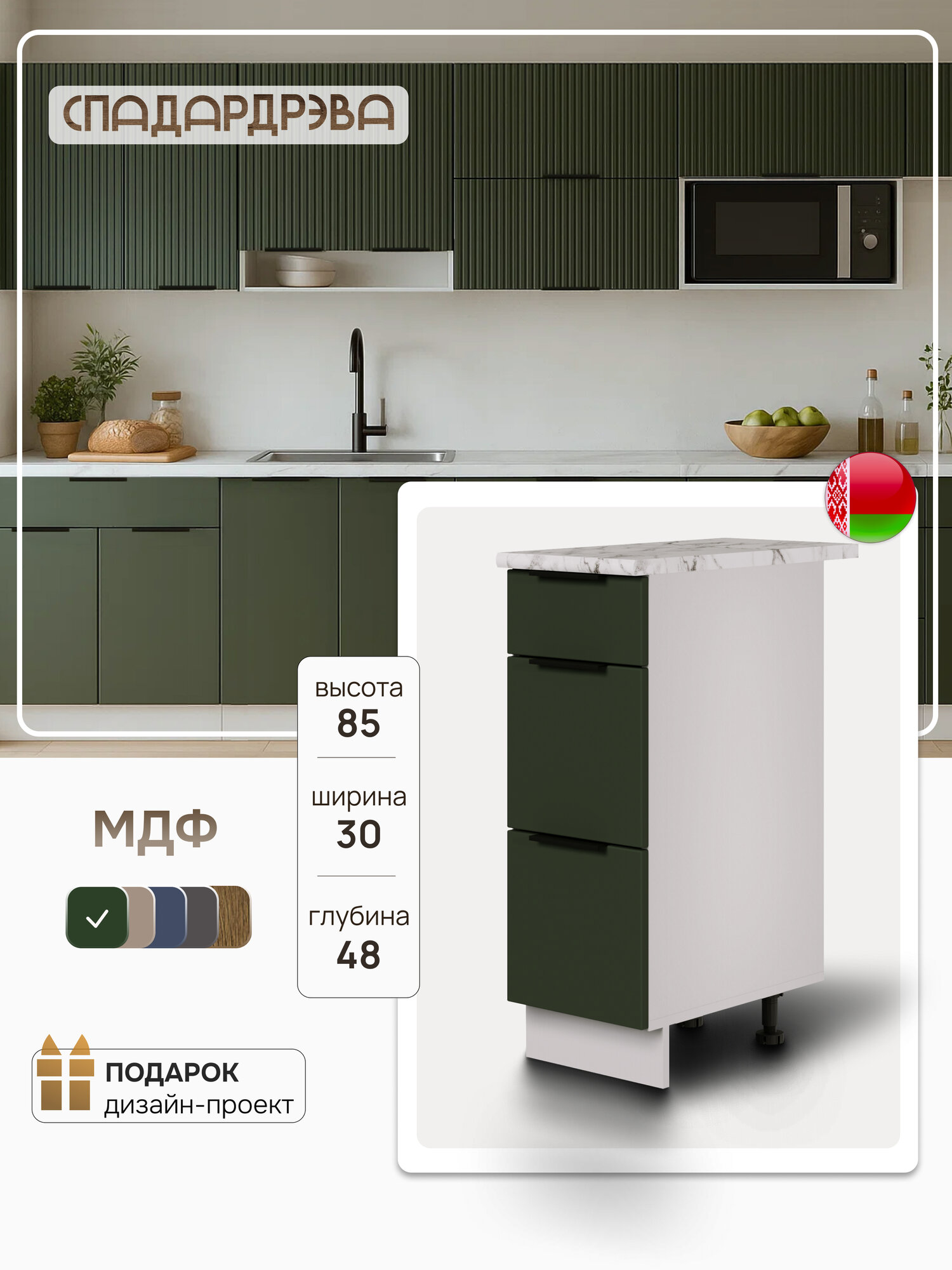 Модуль кухонный напольный с ящиками, СпадарДрэва, модульная кухня, 30х48х85 см, МДФ: сравнение цен, характеристики, фото, актуальное наличие и цены.