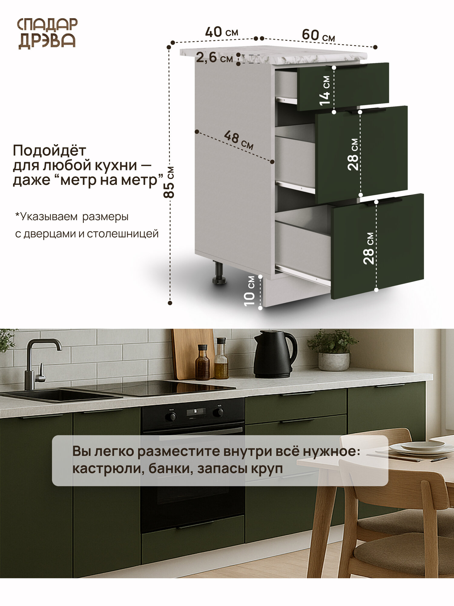 Кухонный модуль напольный с тремя выдвижными ящиками СпадарДрэва, модуль кухонный напольный, 40х48х85 см, МДФ: сравнение цен, характеристики, фото, актуальное наличие и цены.