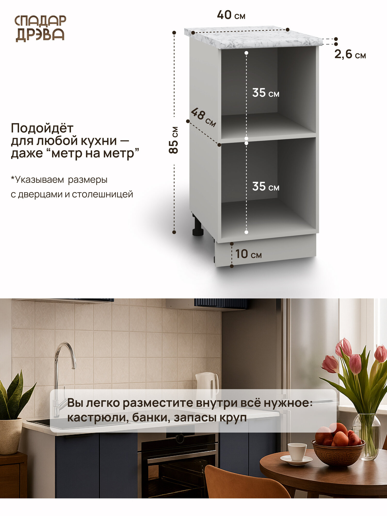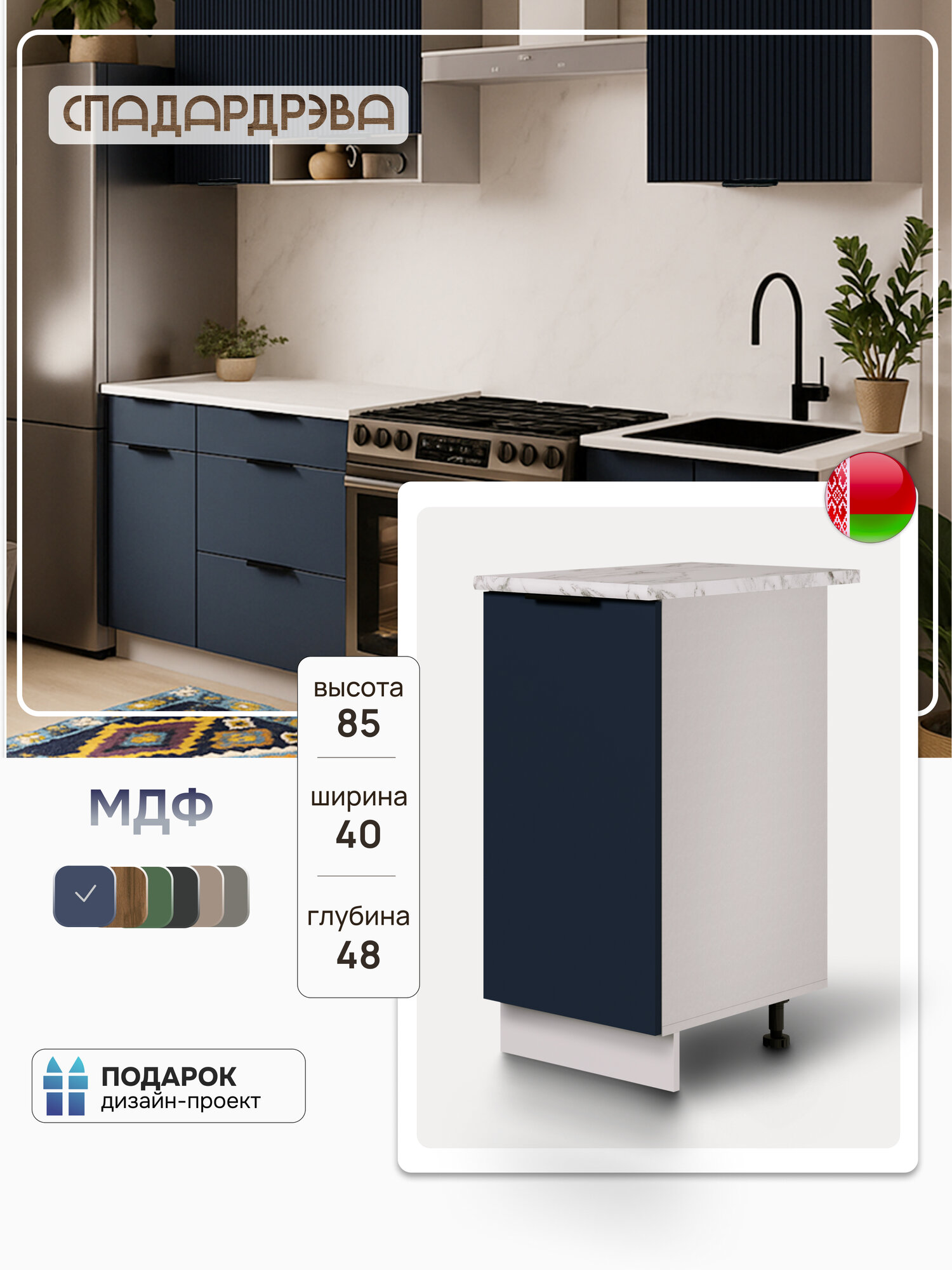 Модуль кухонный напольный, СпадарДрэва, модульная кухня, 400х480х850 мм, МДФ: сравнение цен, характеристики, фото, актуальное наличие и цены.